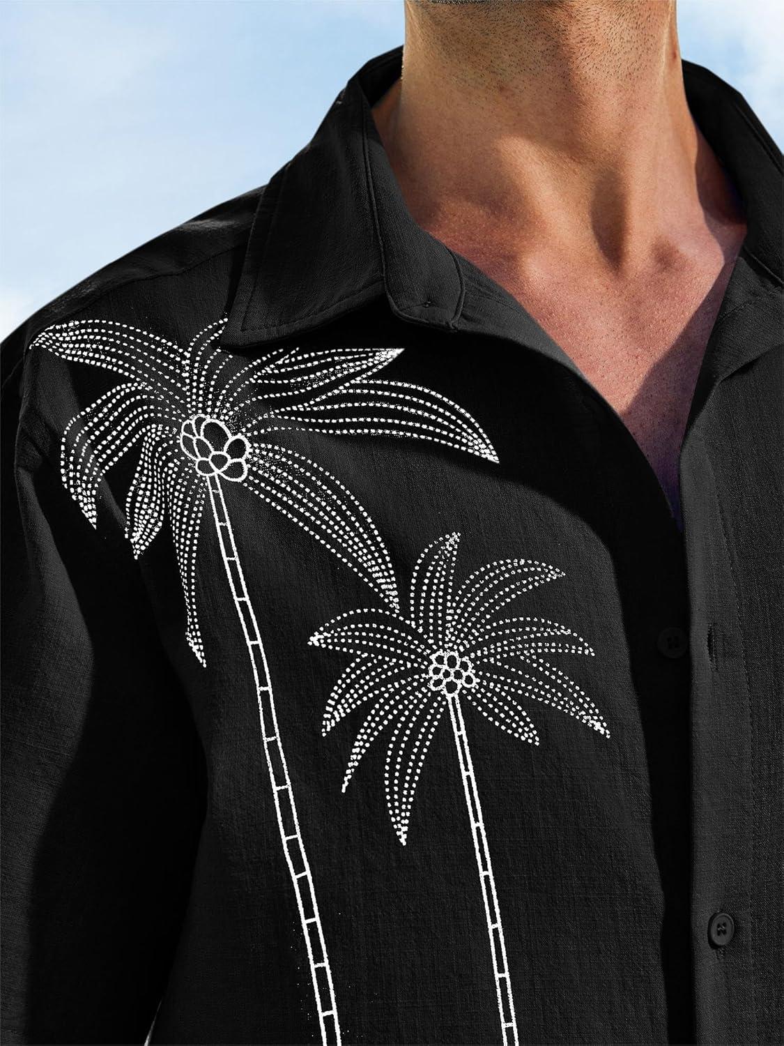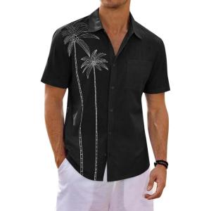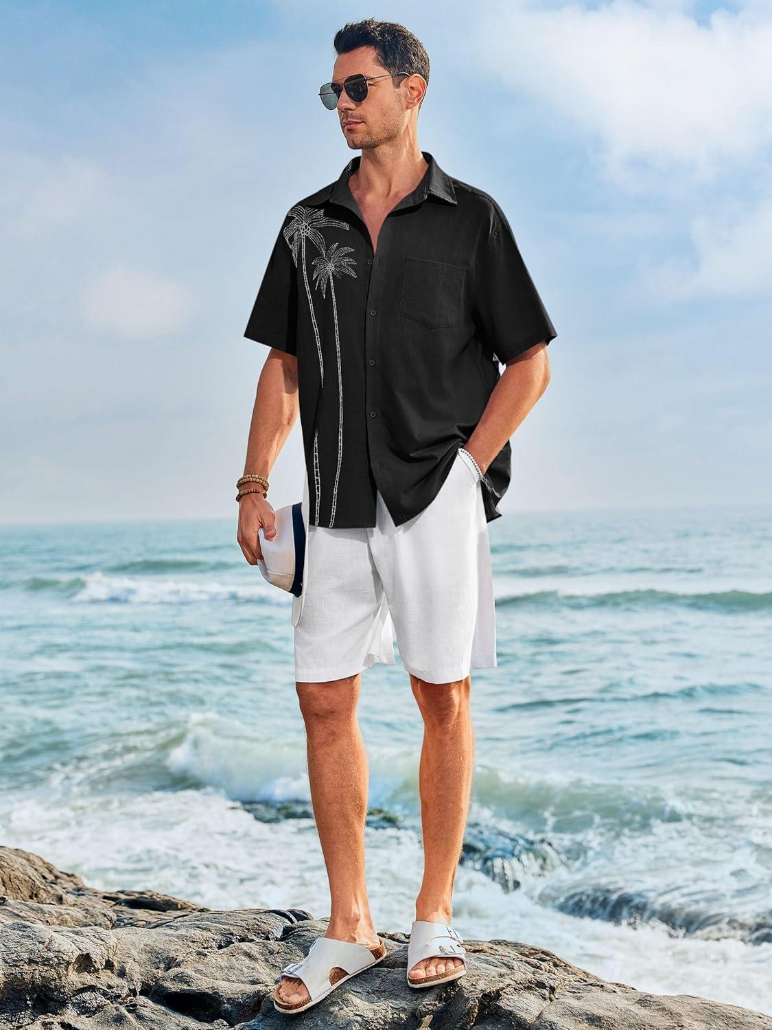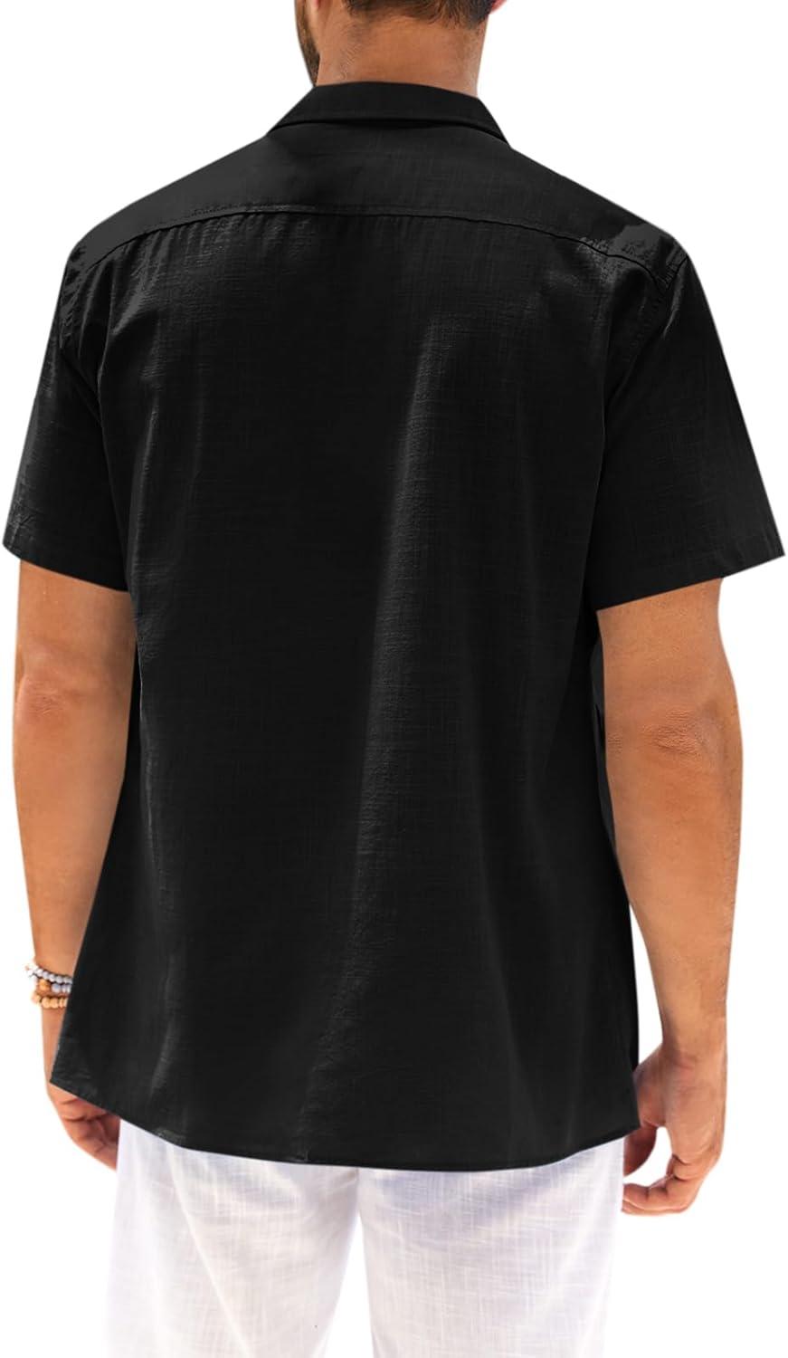 Runcati Mens Hawaiian Shirt Short Sleeve Button Down Summer Beach Vacation Cotton Linen Shirts(Black)