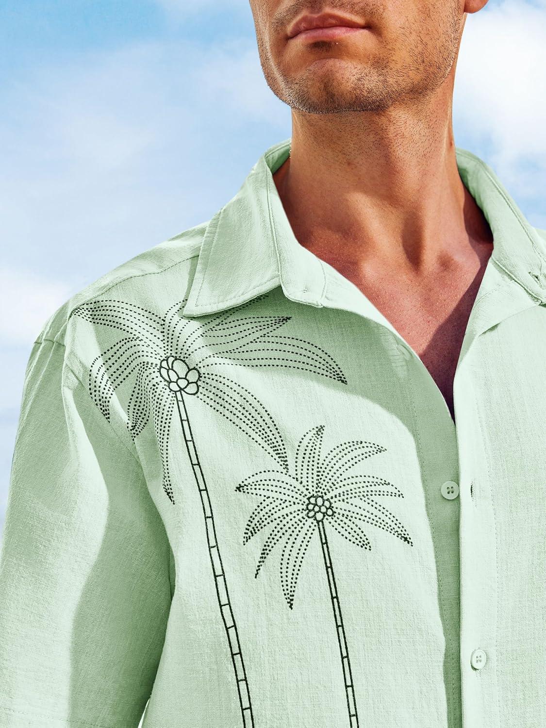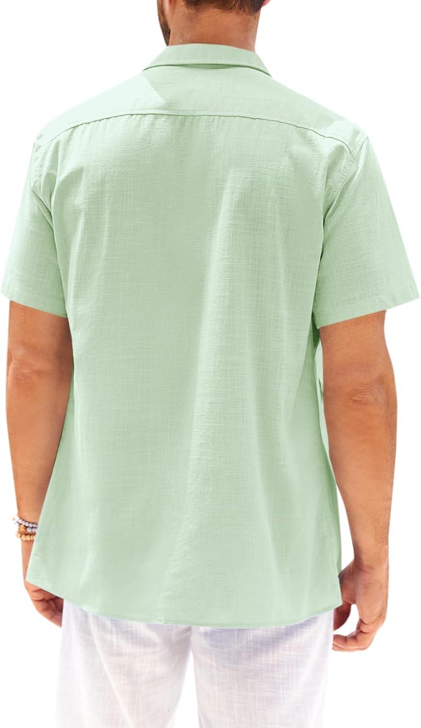 Runcati Mens Hawaiian Shirt Short Sleeve Button Down Summer Beach Vacation Cotton Linen Shirts(Mint Color)