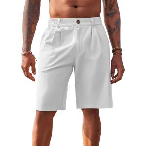 Runcati Mens Golf Shorts Flat Front Chino Casual Cotton Dress Work Shorts for Men(White)