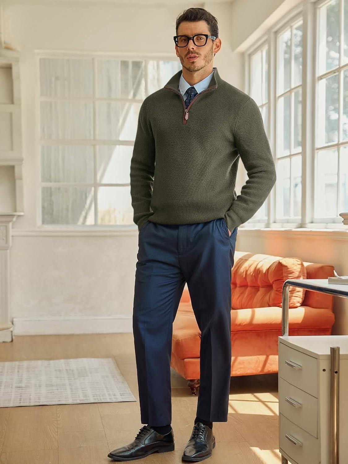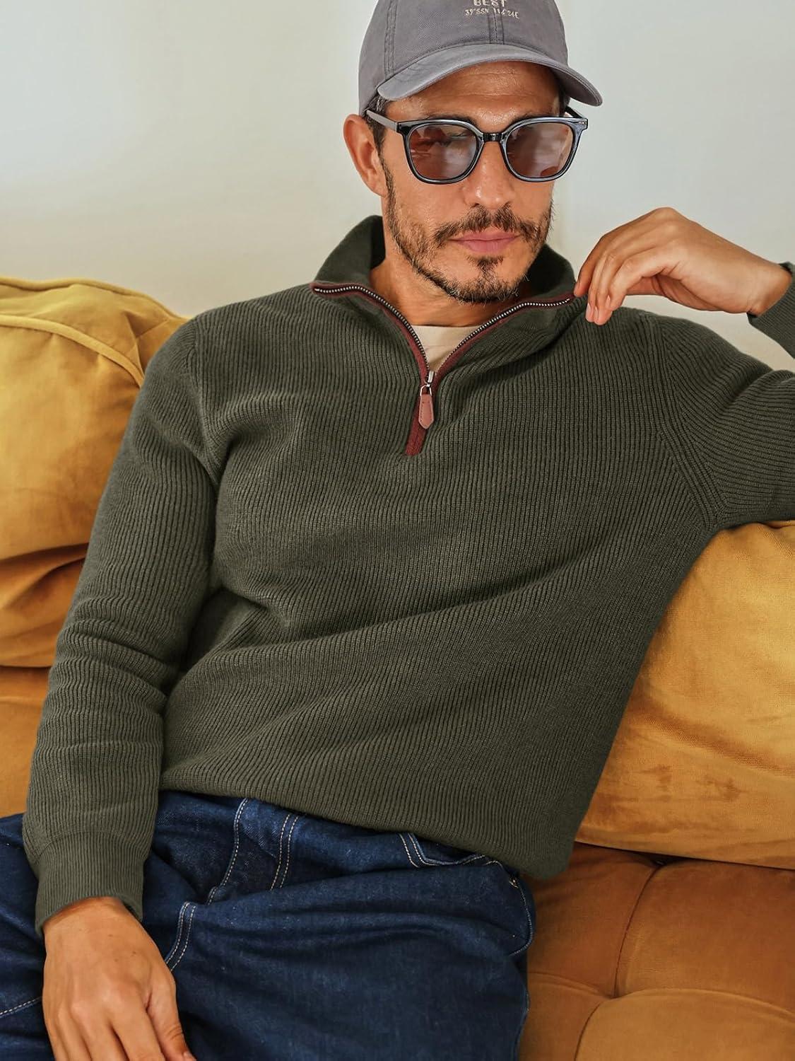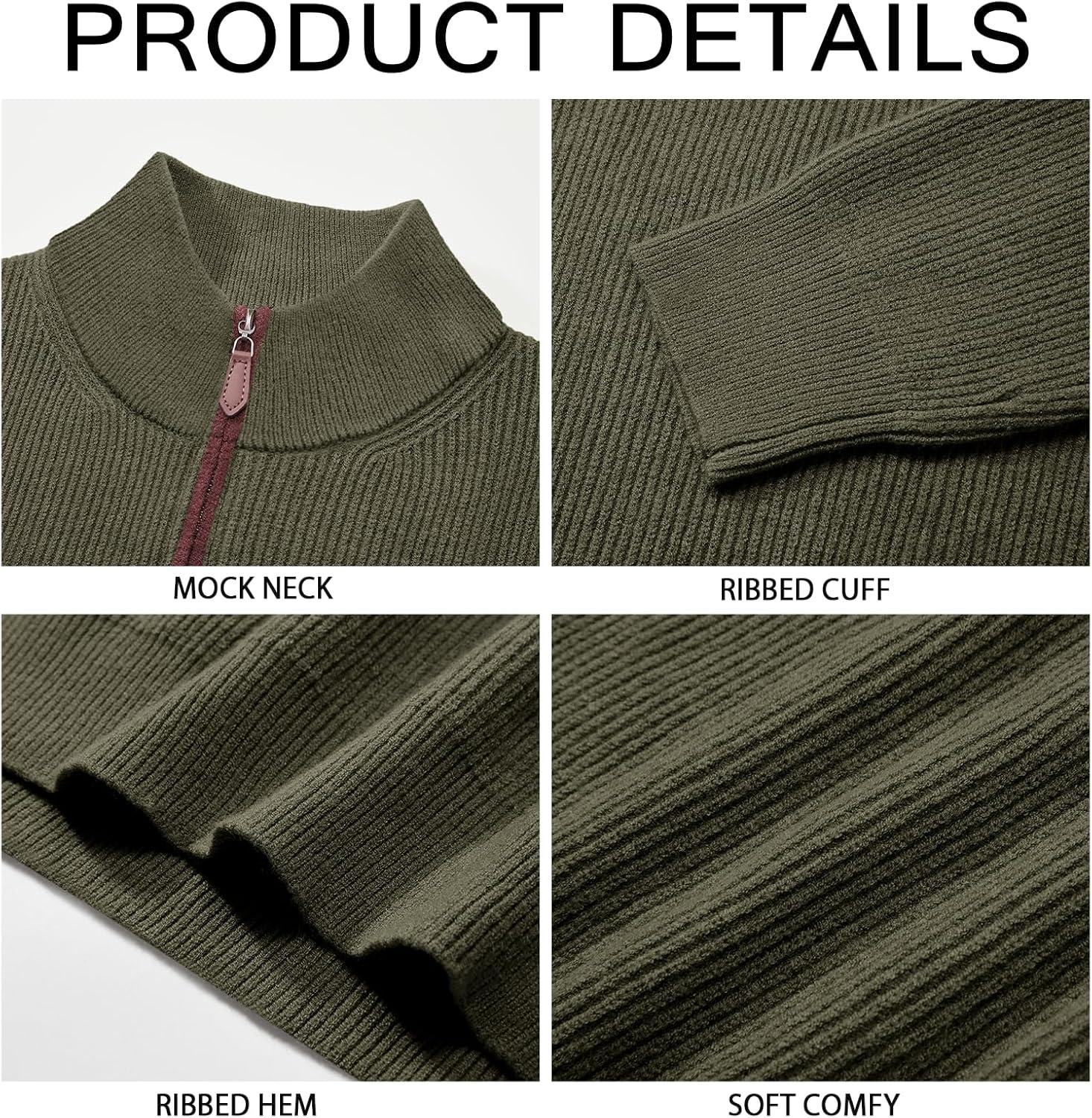 Runcati Mens Quarter-Zip Pullover Sweater Casual Mock Neck Winter Warm Ribbed Polo Sweaters(Army Green)