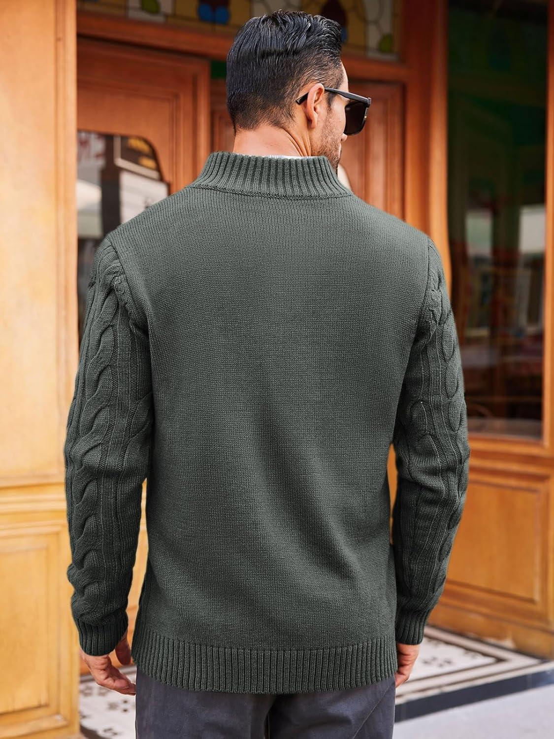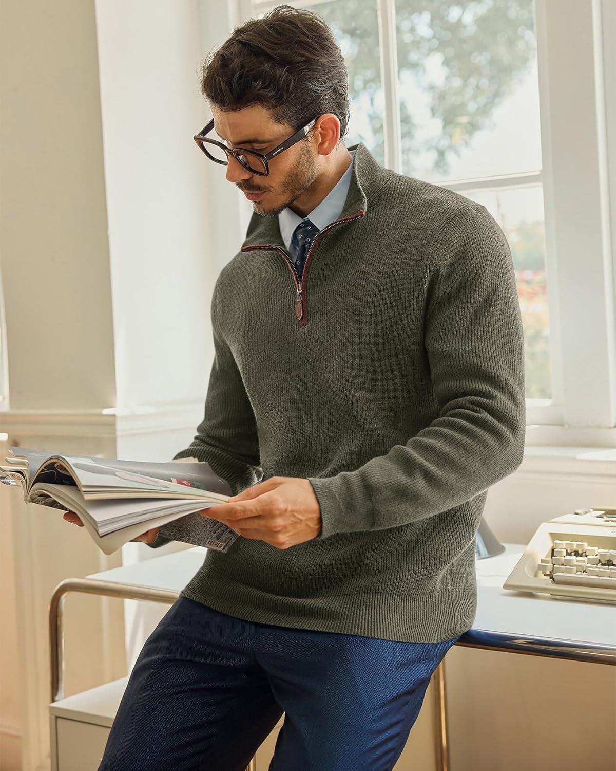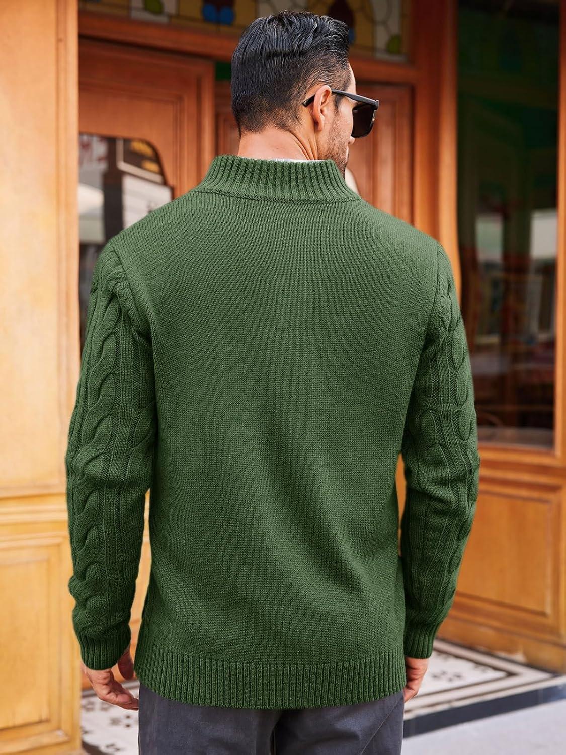 Runcati Mens Quarter-Zip Pullover Sweater Casual Mock Neck Winter Warm Ribbed Polo Sweaters(Army Green)