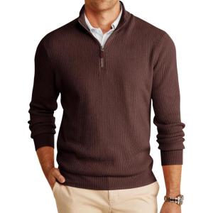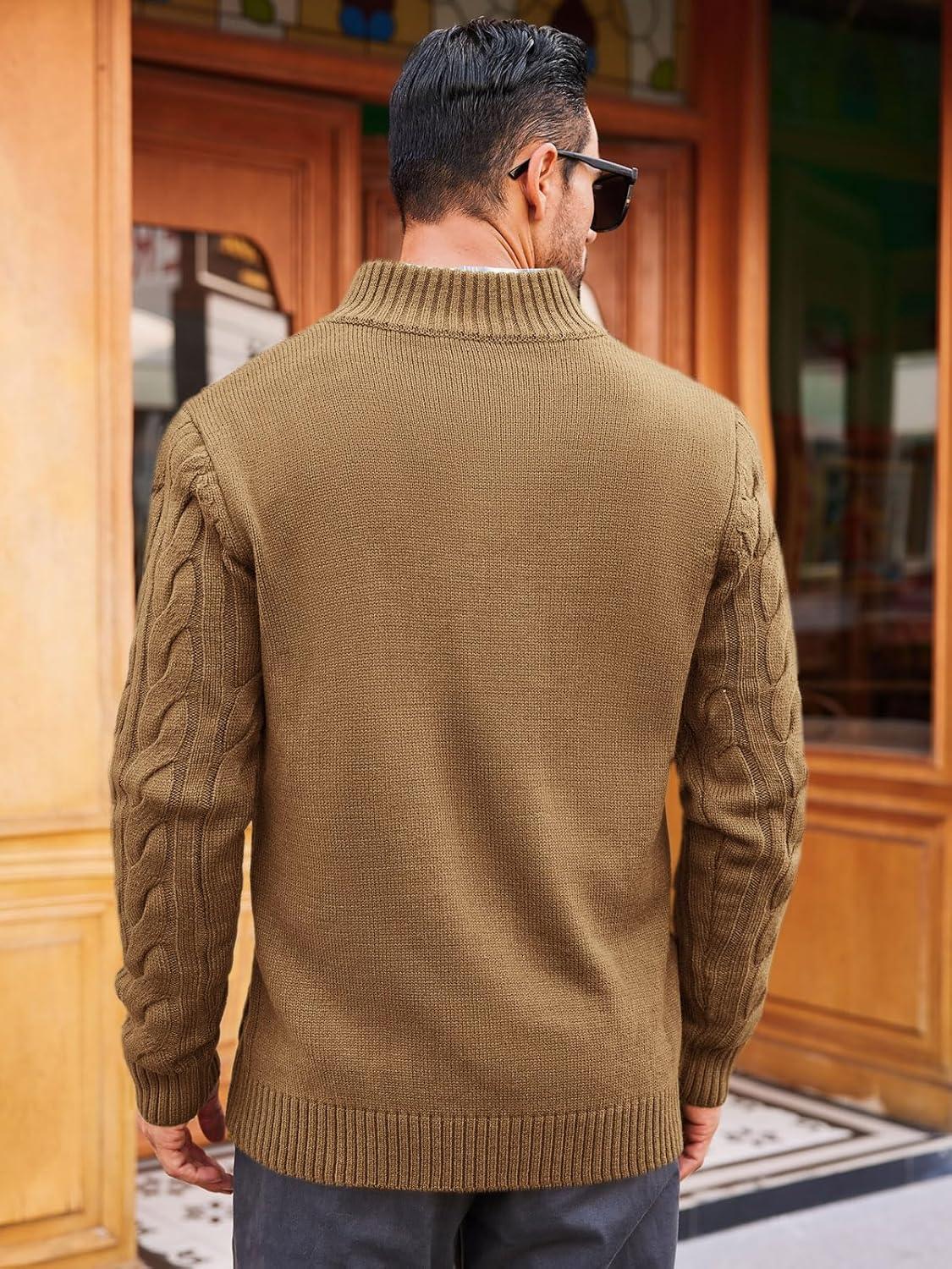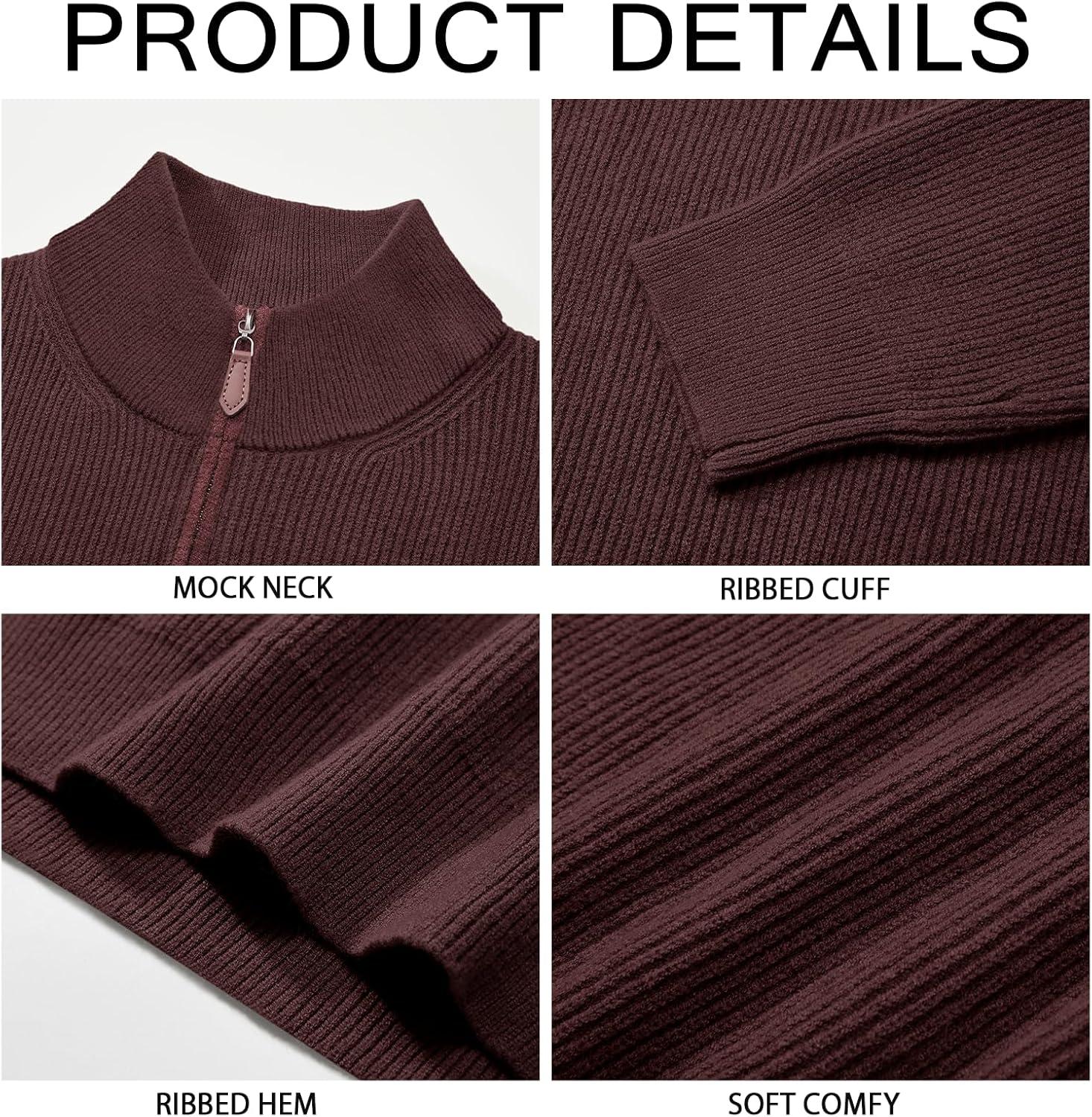 Runcati Mens Quarter-Zip Pullover Sweater Casual Mock Neck Winter Warm Ribbed Polo Sweaters(Coffee)