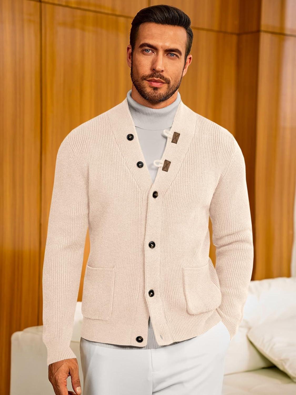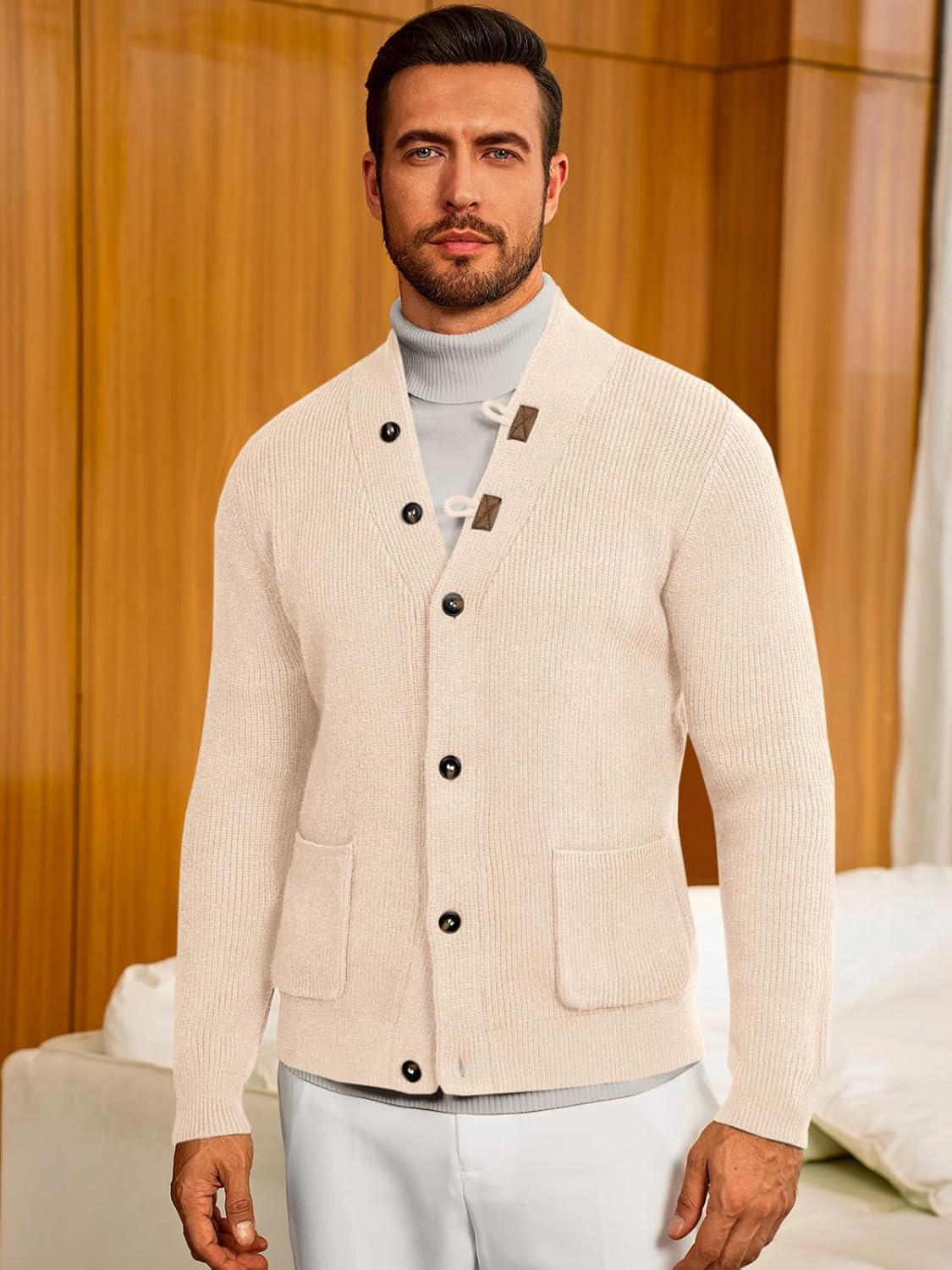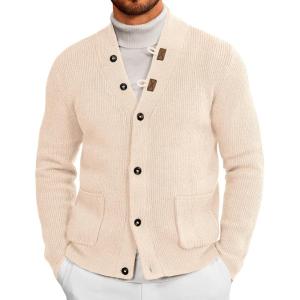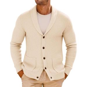 Runcati Mens Shawl Collar Cardigan Sweater Button Down Textured Knit Sweaters Casual Chunky Cardigan with Pockets(Beige)