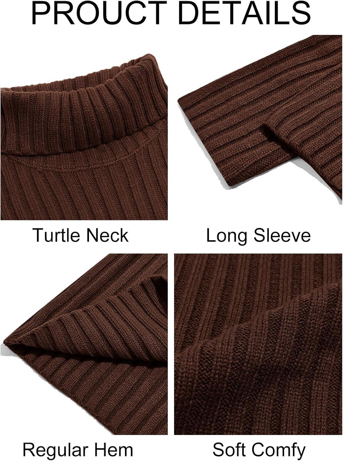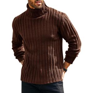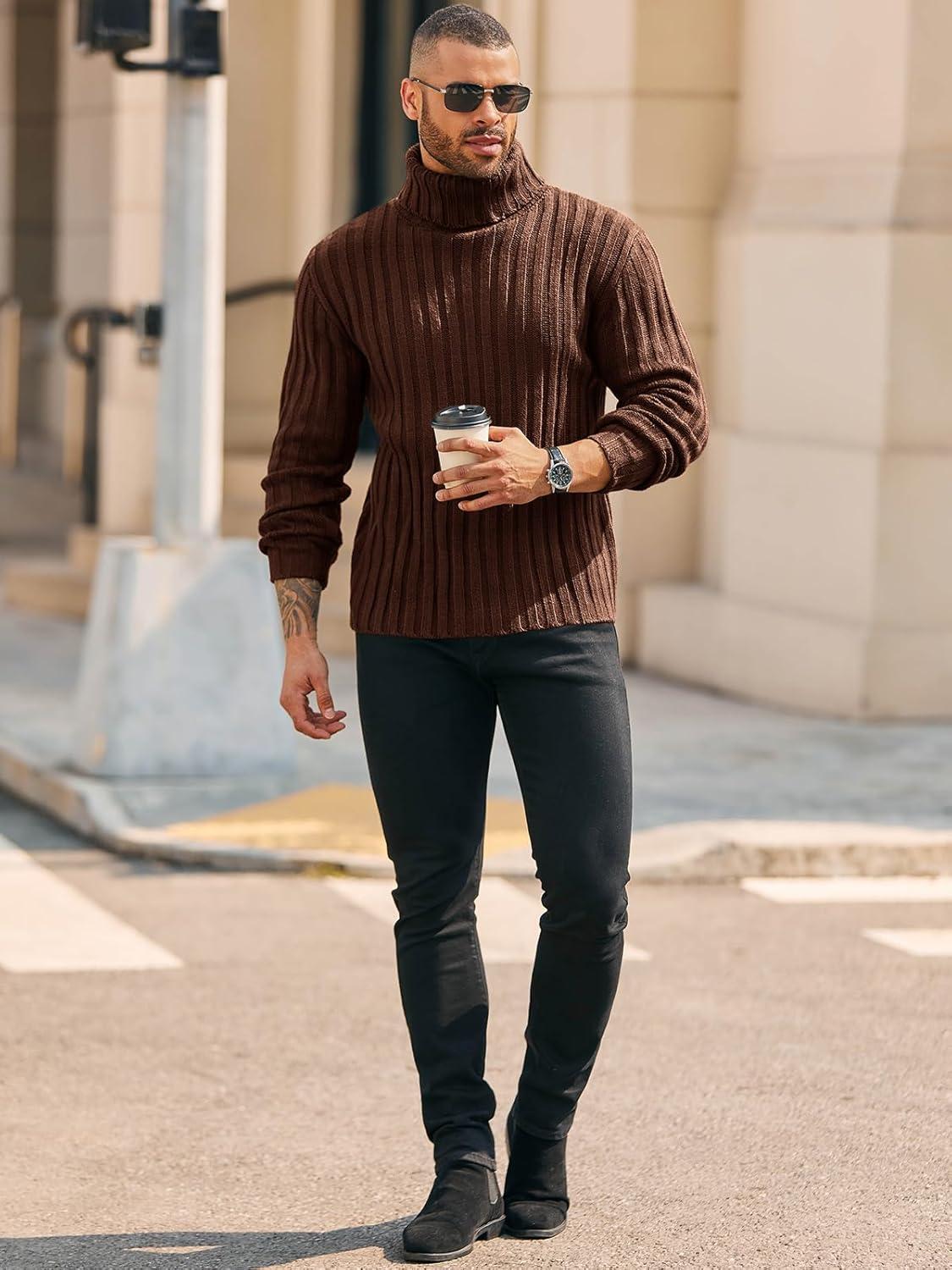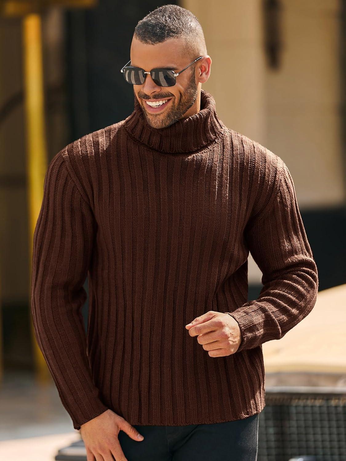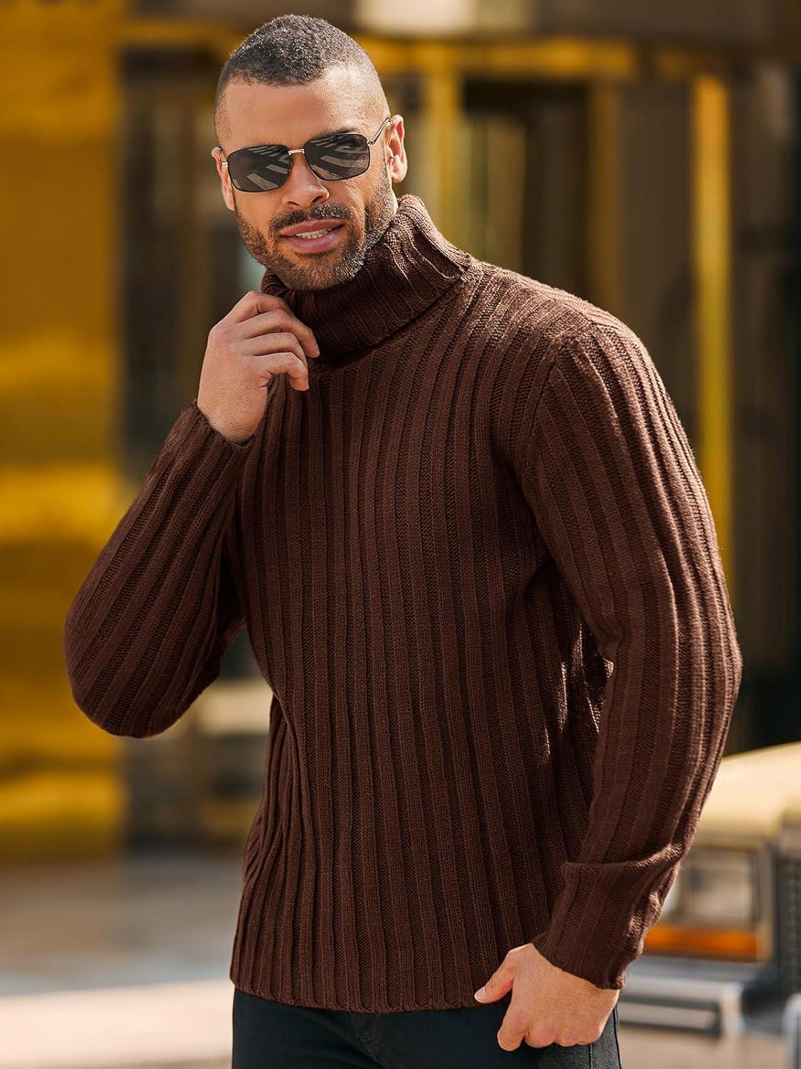 Runcati Mens Chunky Turtleneck Sweaters Cable Knitted Casual Slim Fit Fall Winter Warm Pullover Sweater(Coffee)