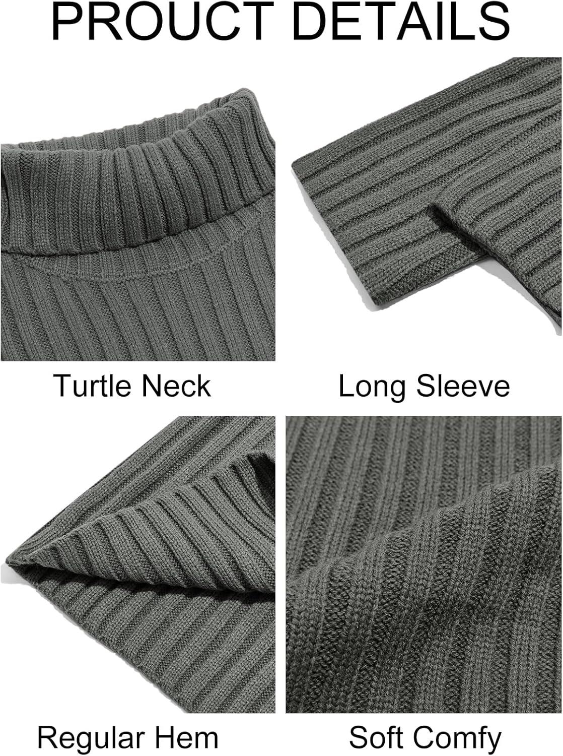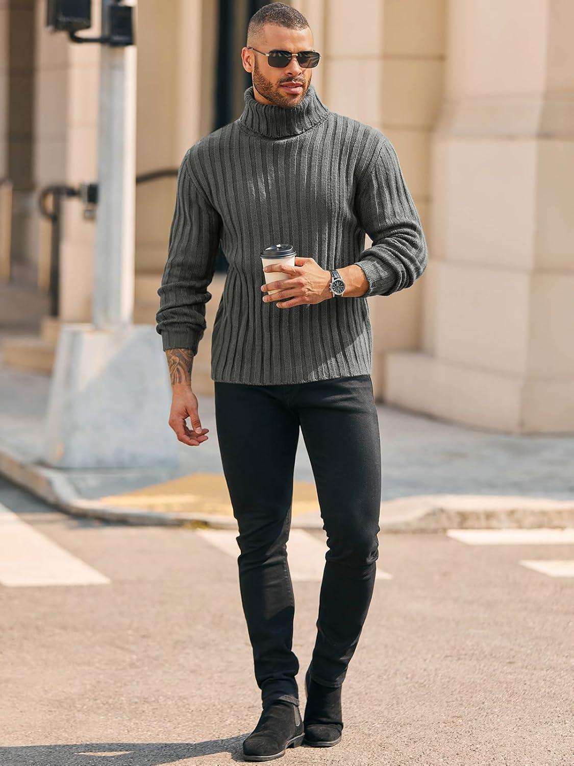 Mens Sweaters Turtleneck Cable Knitted Pullover Long Sleeve Slim Fit Chunky Casual Fall Winter Warm Cardigans(Dark Gray)