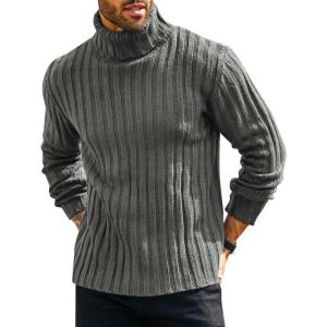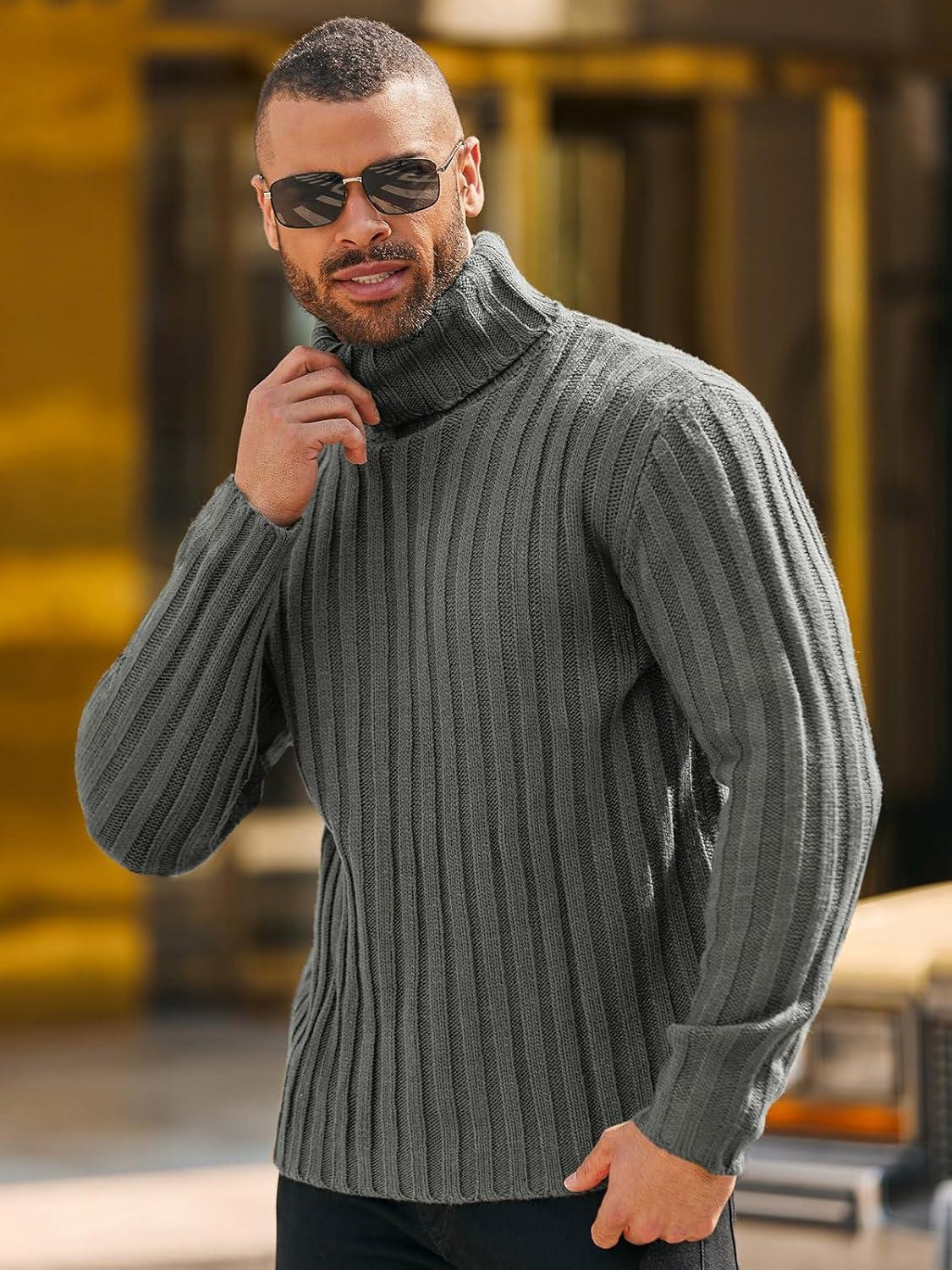 Runcati Mens Chunky Turtleneck Sweaters Cable Knitted Casual Slim Fit Fall Winter Warm Pullover Sweater(Gray)