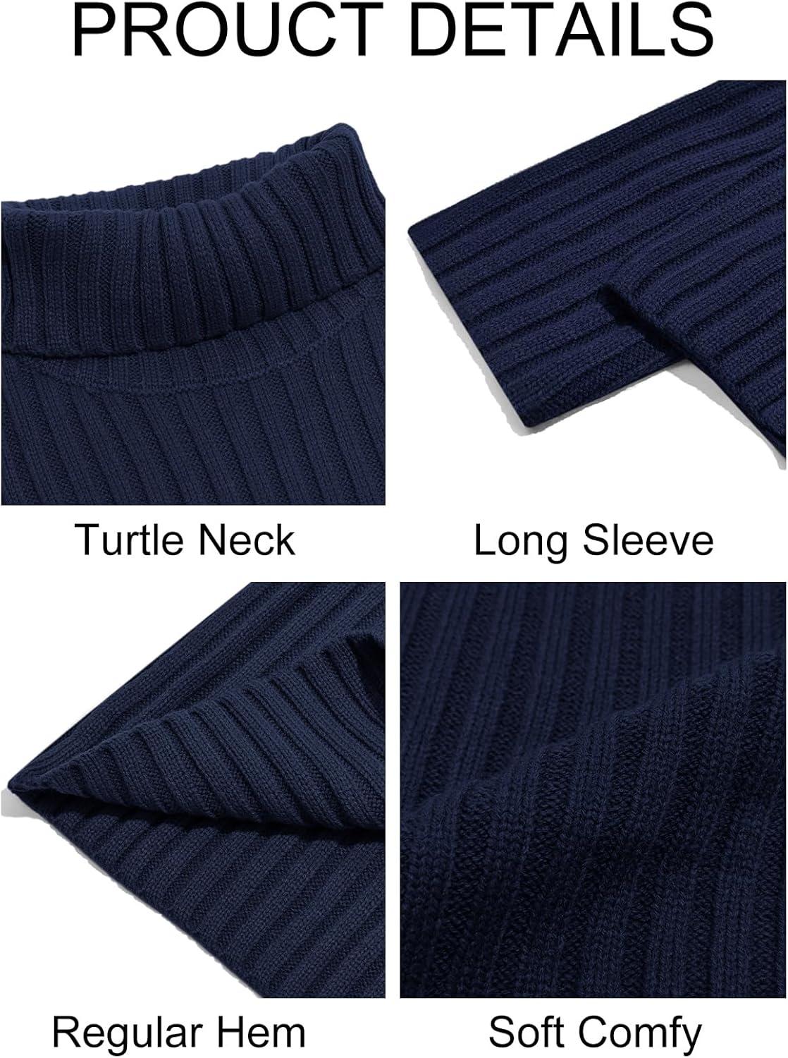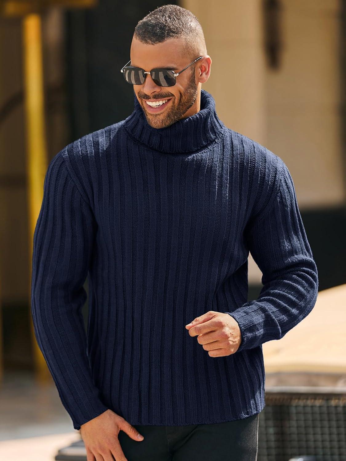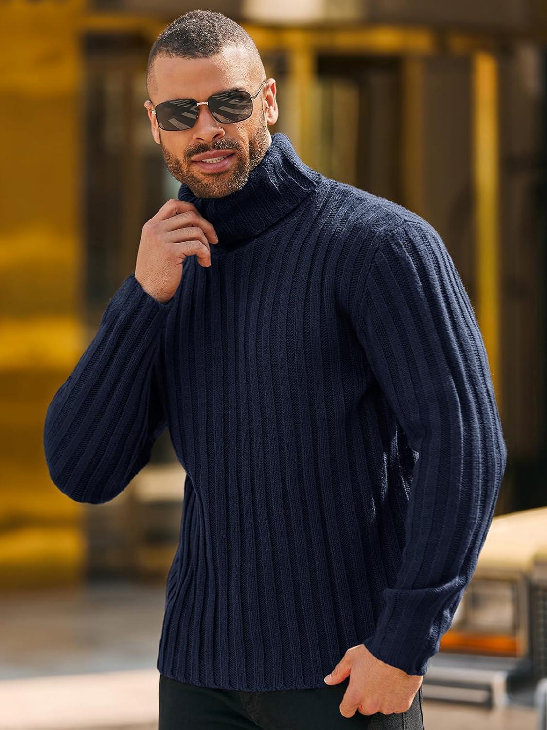 Runcati Mens Chunky Turtleneck Sweaters Cable Knitted Casual Slim Fit Fall Winter Warm Pullover Sweater(Navy)