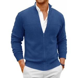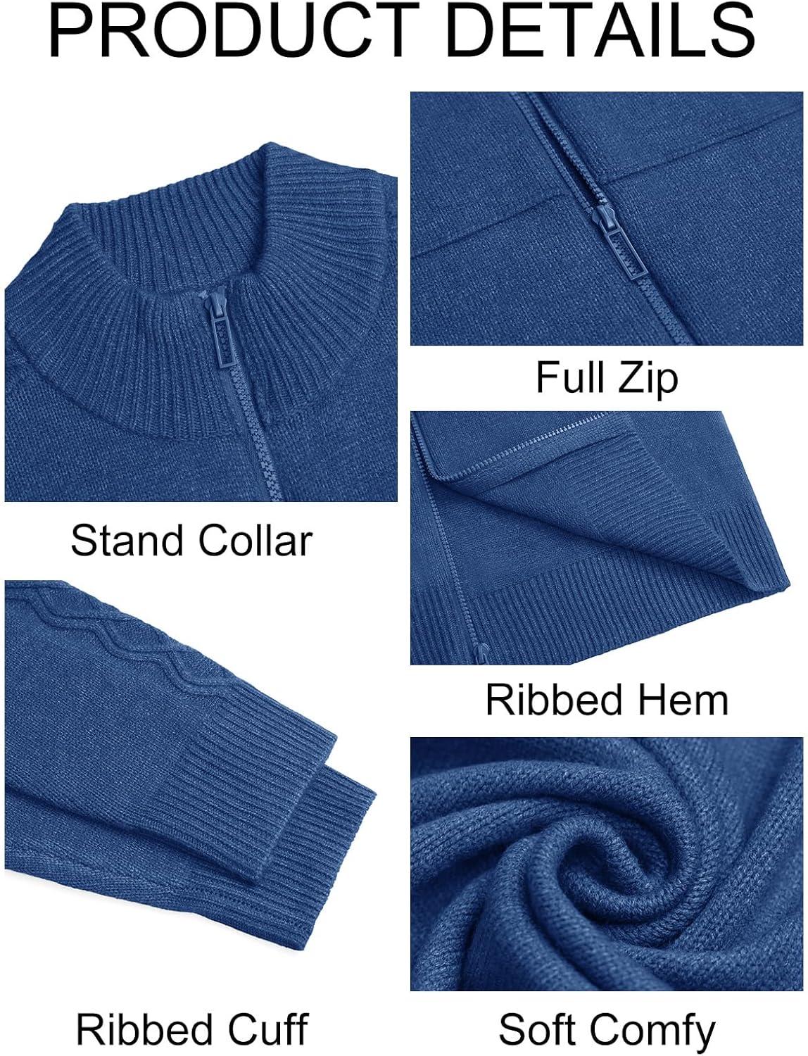 Runcati Mens Full Zip Cardigan Sweater Casual Mock Neck Cable Knitted Winter Chunky Sweaters(Blue)