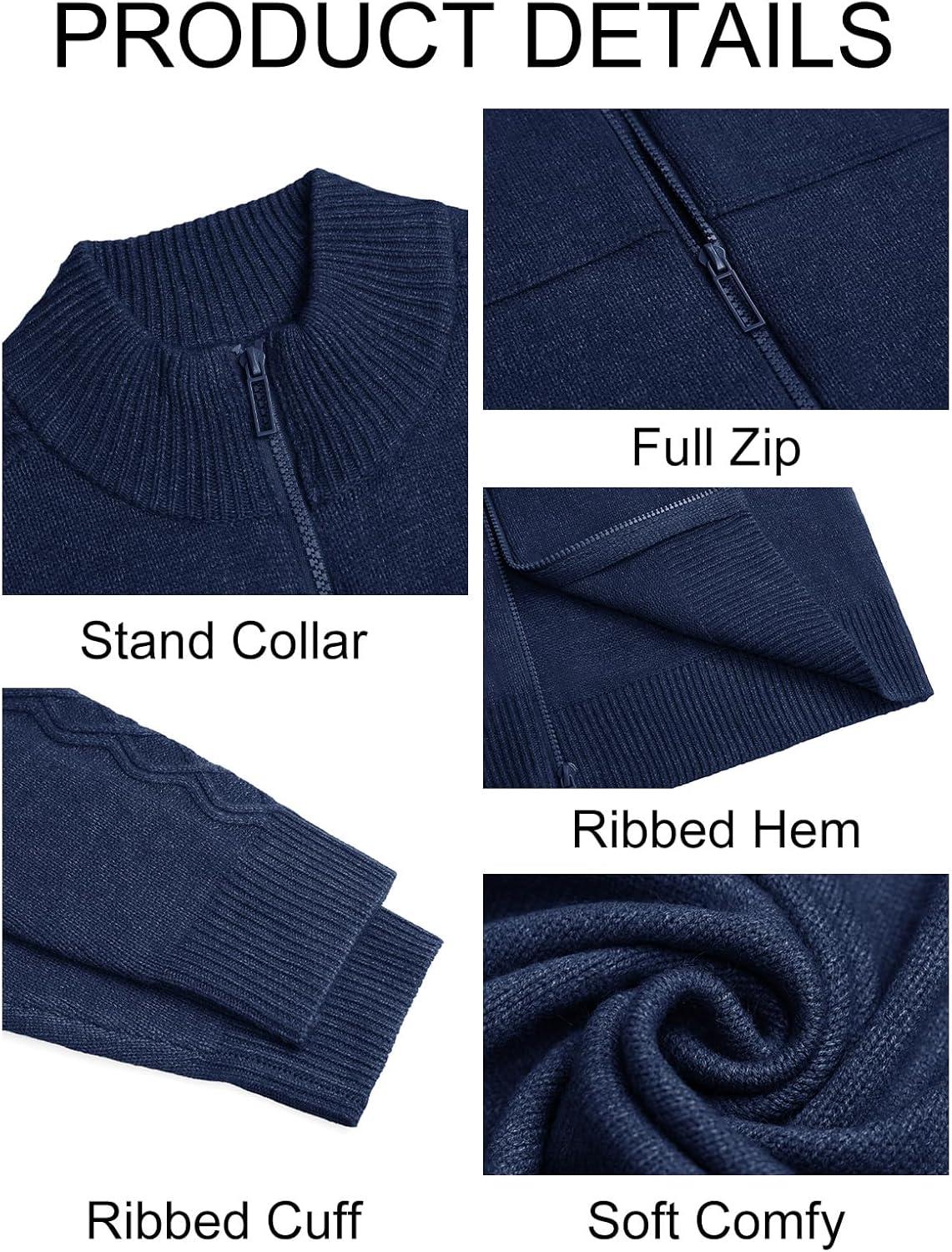 Runcati Mens Full Zip Cardigan Sweater Casual Mock Neck Cable Knitted Winter Chunky Sweaters(Navy)