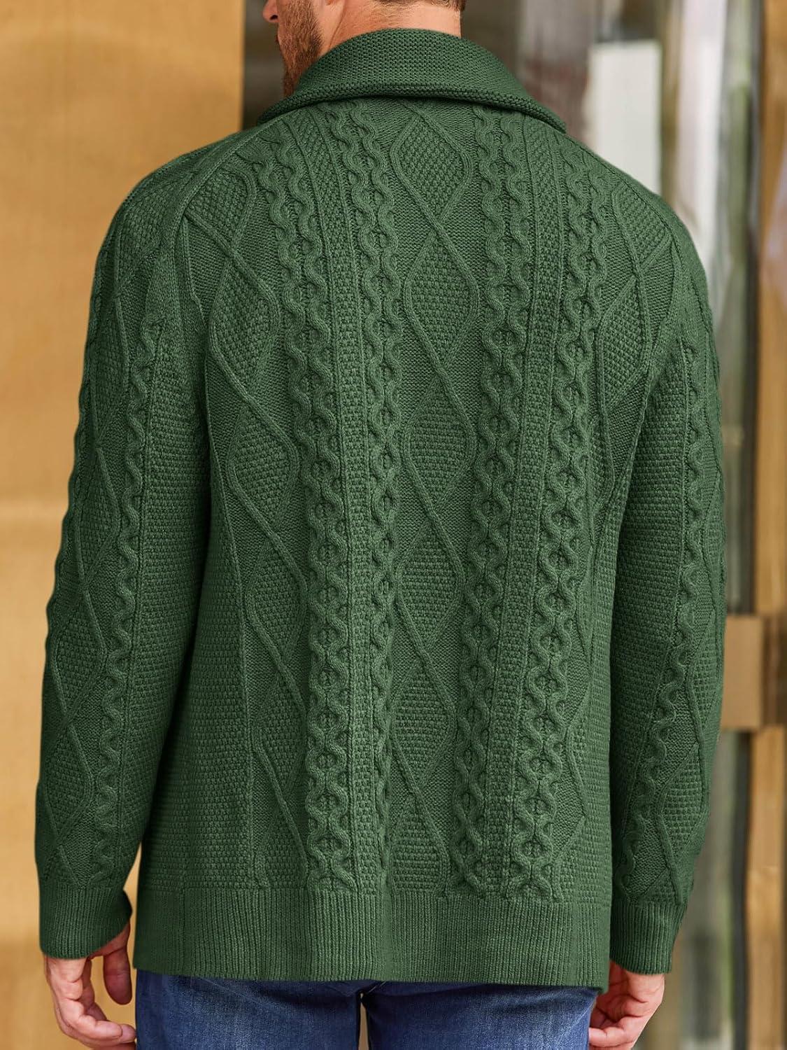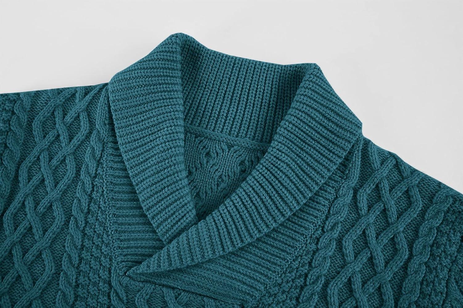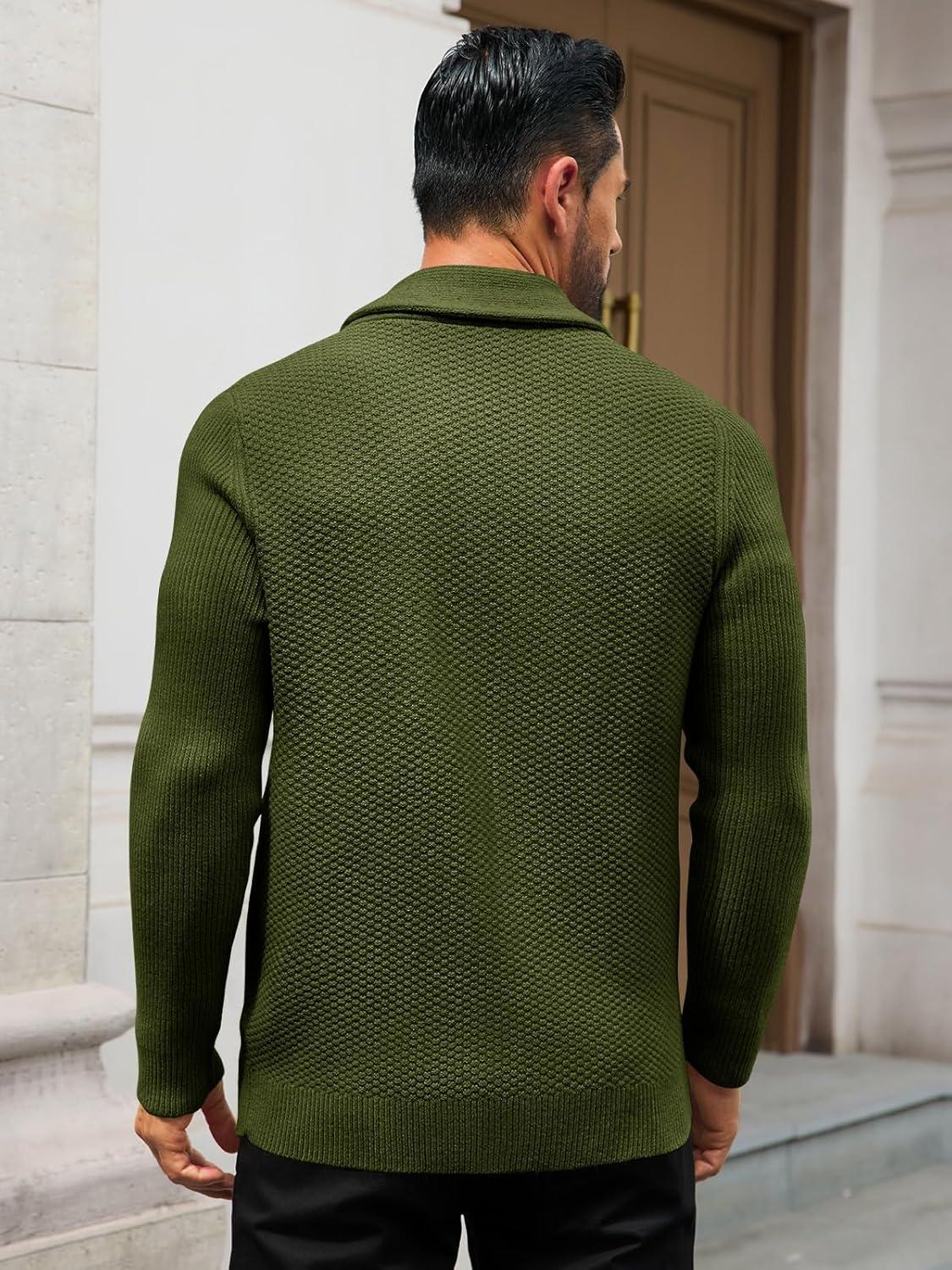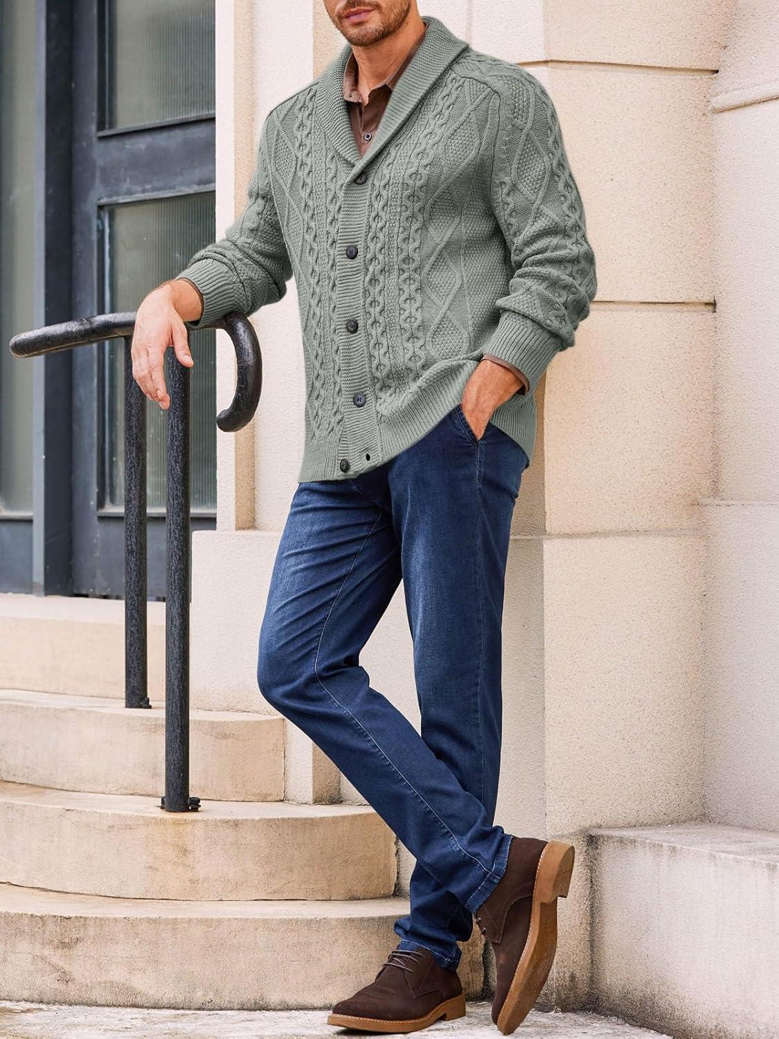 Runcati Mens Shawl Collar Cardigan Sweater Cable Knitted Button Down Sweaters Chunky Fall Winter Outwear(Army Green)