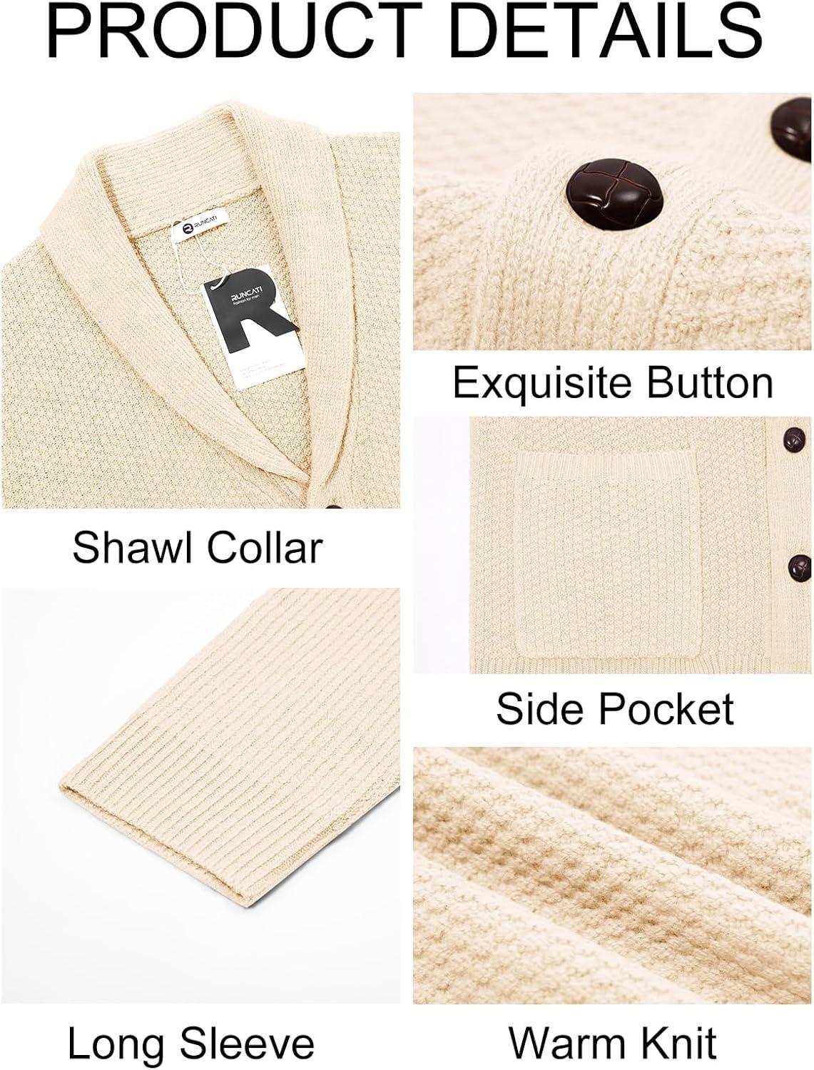 Runcati Mens Shawl Collar Cardigan Sweater Cable Knitted Button Down Sweaters Chunky Fall Winter Outwear(Beige)