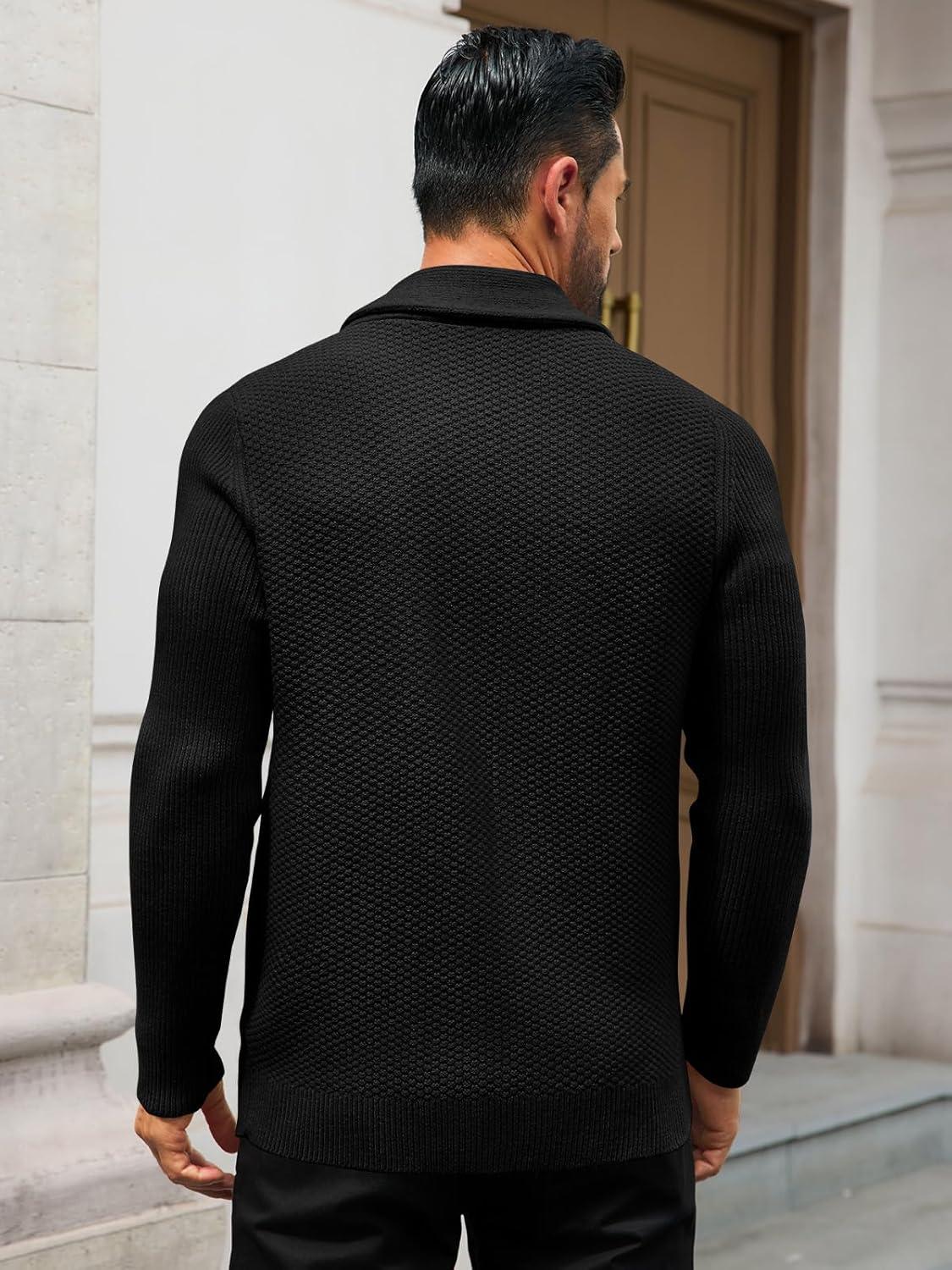 Runcati Mens Shawl Collar Cardigan Sweaters Button Down Open Front Knitwear Cable Knitted Ribbed Jackets Outwear(Black)