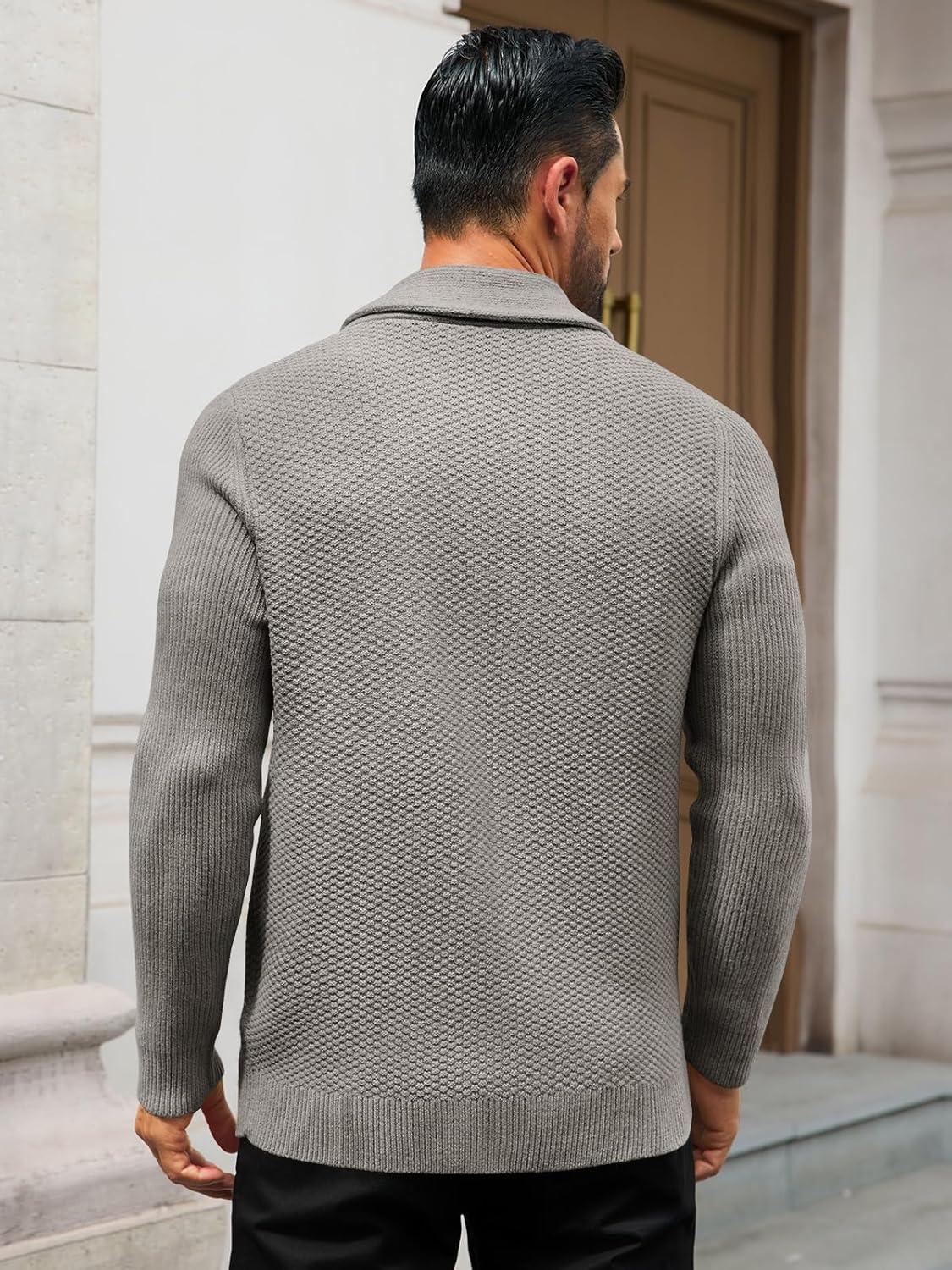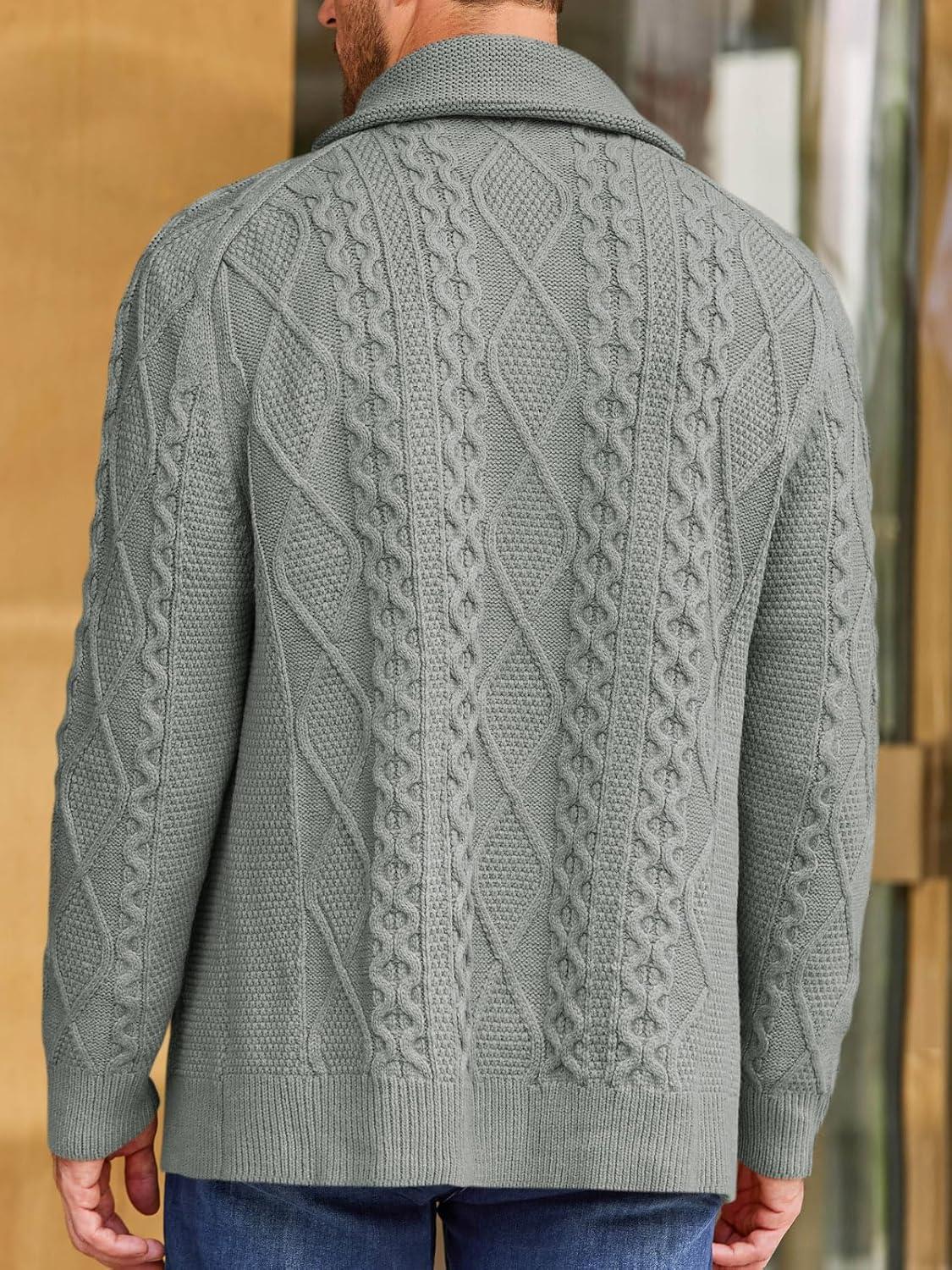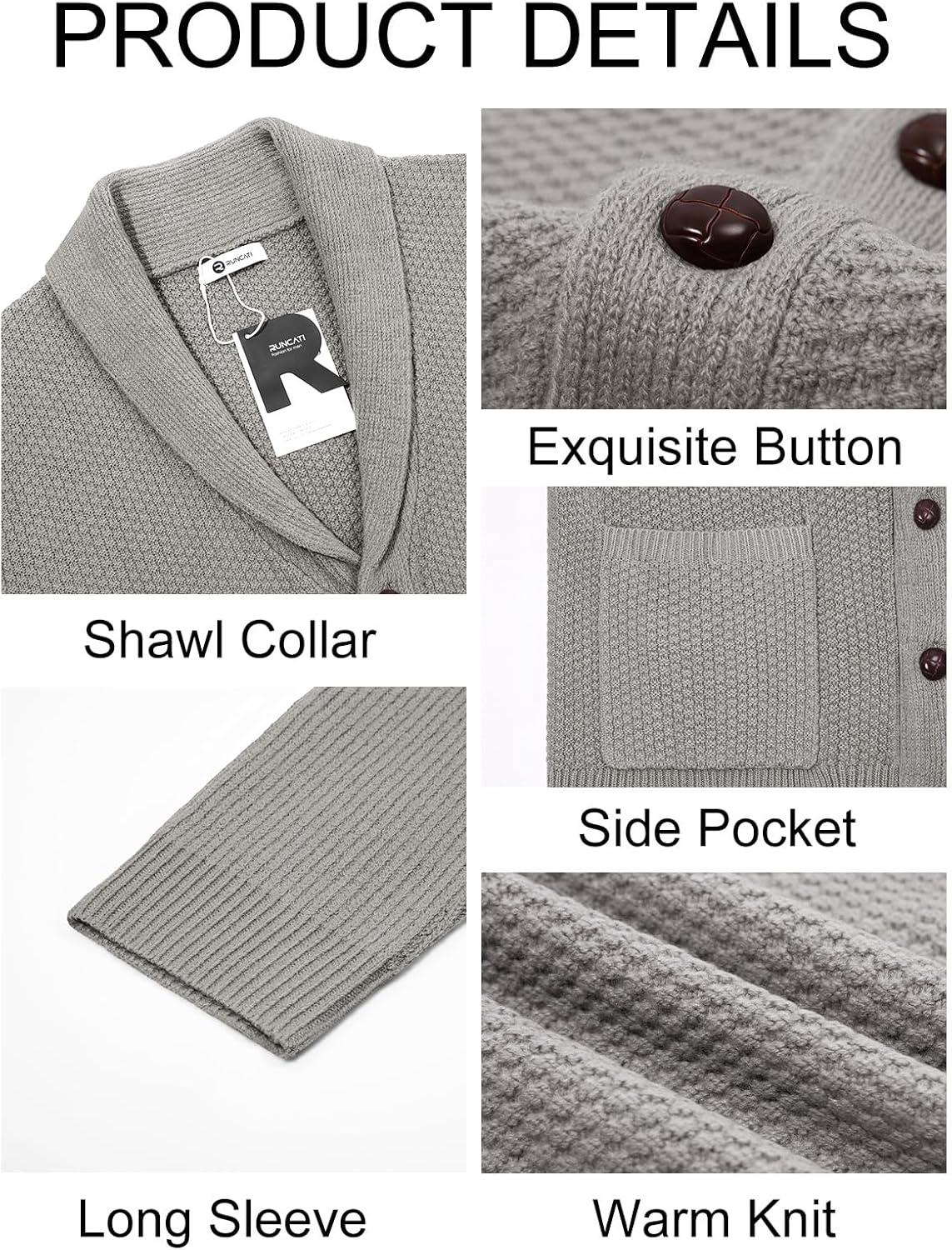 Runcati Mens Shawl Collar Cardigan Sweater Cable Knitted Button Down Sweaters Chunky Fall Winter Outwear(Grey)