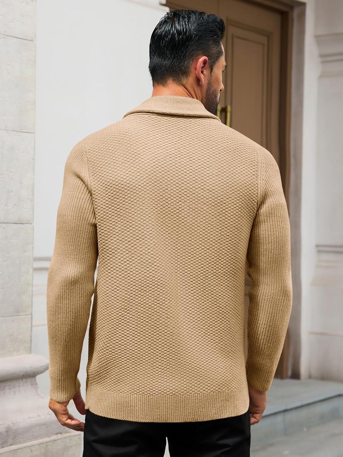 Runcati Mens Shawl Collar Cardigan Sweaters Button Down Open Front Knitwear Cable Knitted Ribbed Jackets Outwear(Khaki)