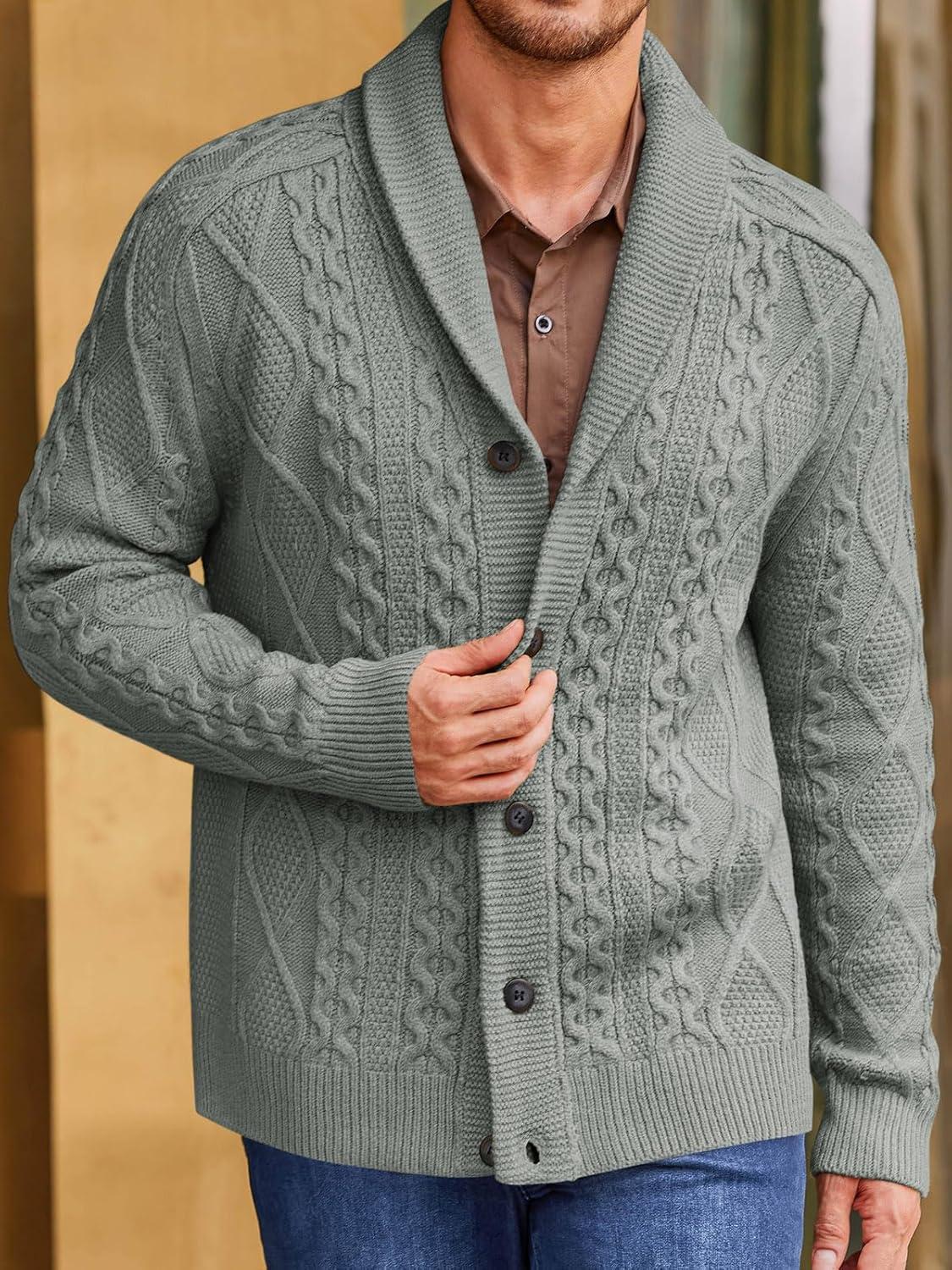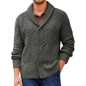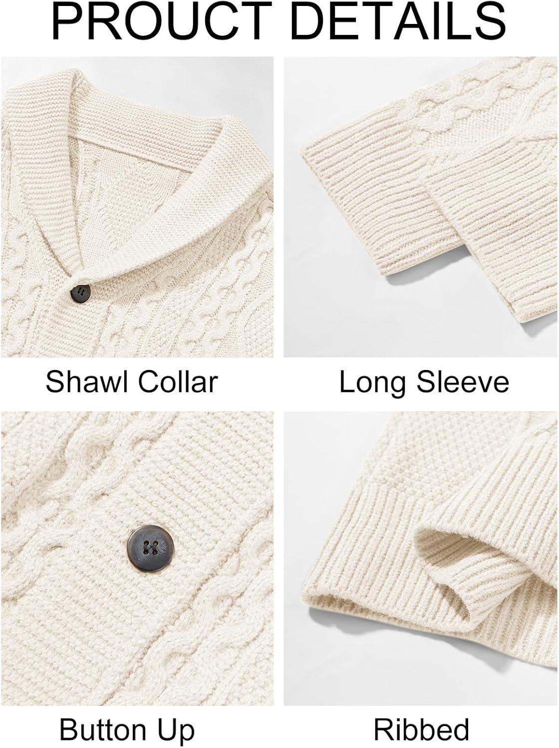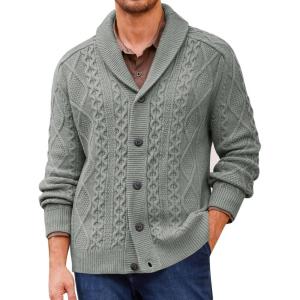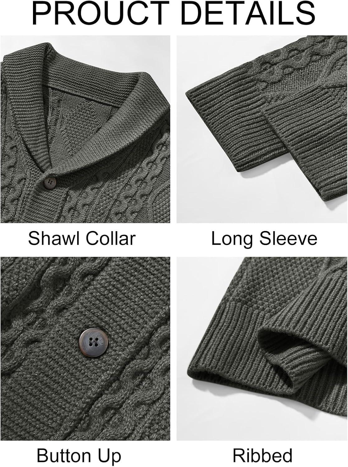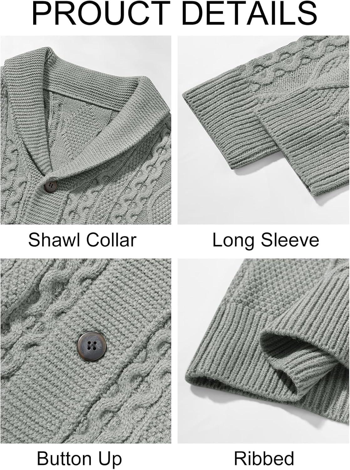 Runcati Mens Cable Knit Cardigan Sweater Shawl Collar Casual Button Down Long Sleeve Sweaters(Grey)