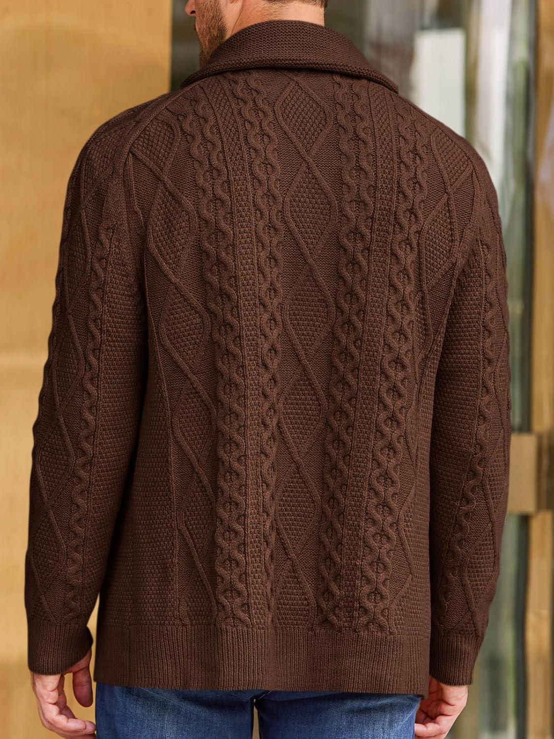 Runcati Mens Shawl Collar Cardigan Sweater Cable Knitted Button Down Sweaters Chunky Fall Winter Outwear(Brown)