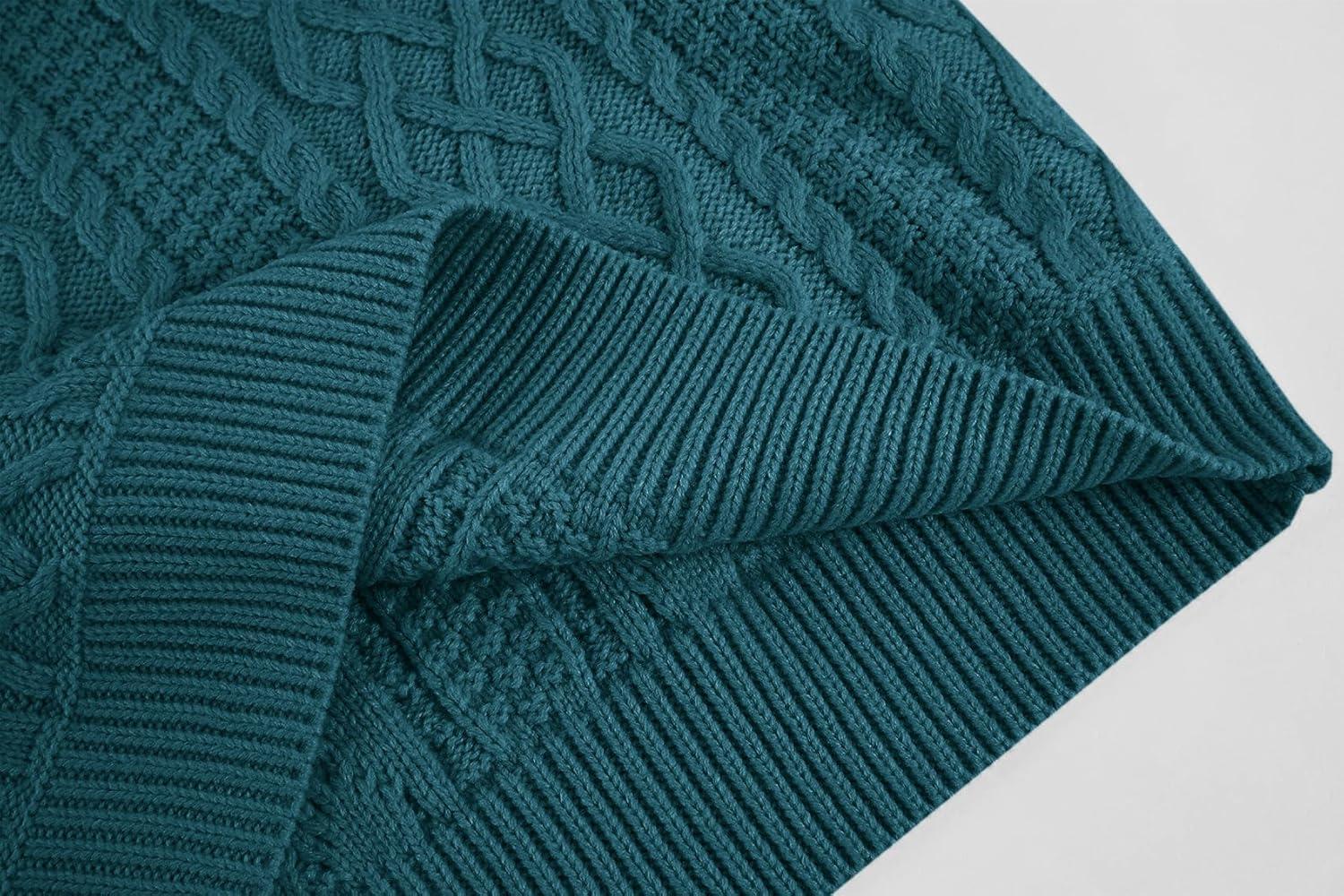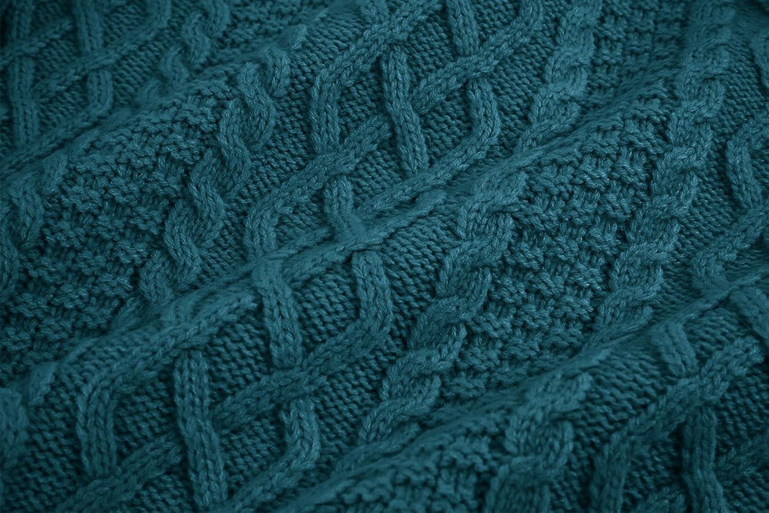 Mens Sweaters Turtleneck Cable Knitted Pullover Long Sleeve Slim Fit Chunky Casual Fall Winter Warm Cardigans(Blue)
