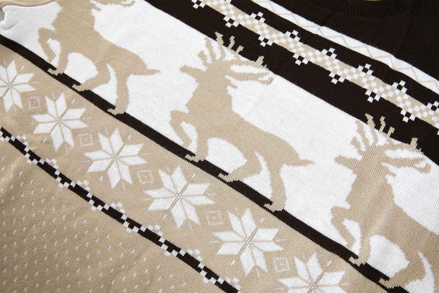 Runcati Mens Ugly Christmas Sweater Pullover Long Sleeve Reindeer Snowflake Soft Knitted Sweaters(Brown)