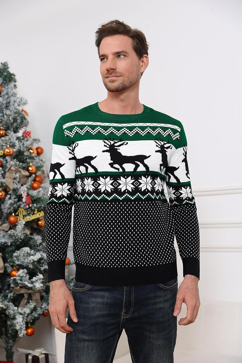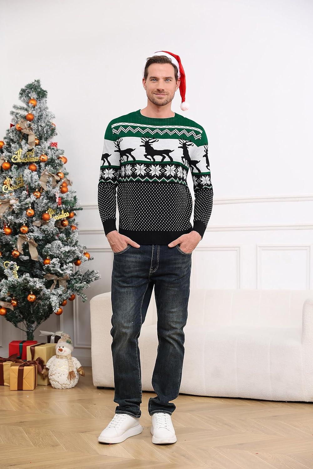 Runcati Mens Ugly Christmas Sweater Pullover Long Sleeve Reindeer Snowflake Soft Knitted Sweaters(Green)