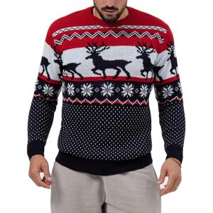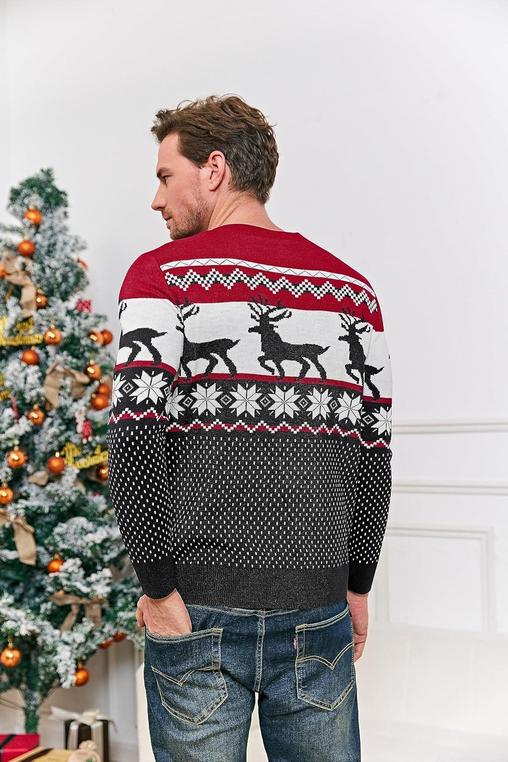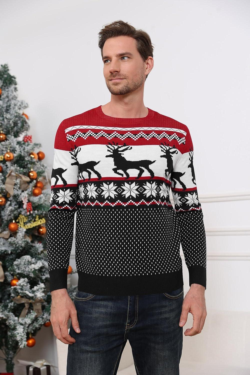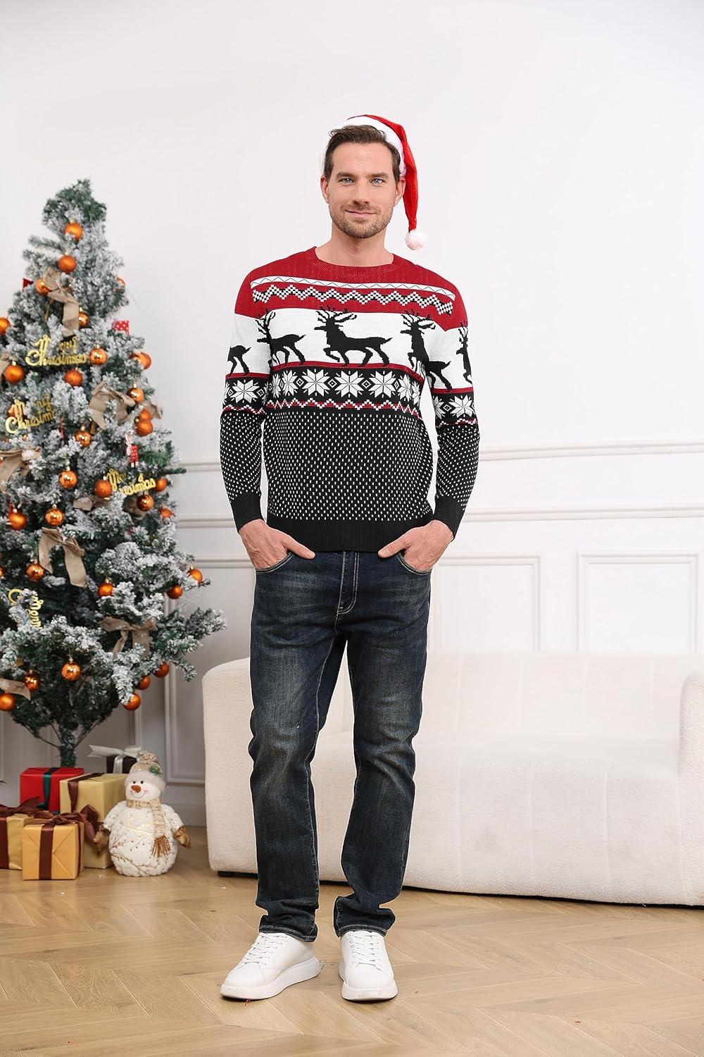 Runcati Mens Ugly Christmas Sweater Pullover Long Sleeve Reindeer Snowflake Soft Knitted Sweaters(Red)