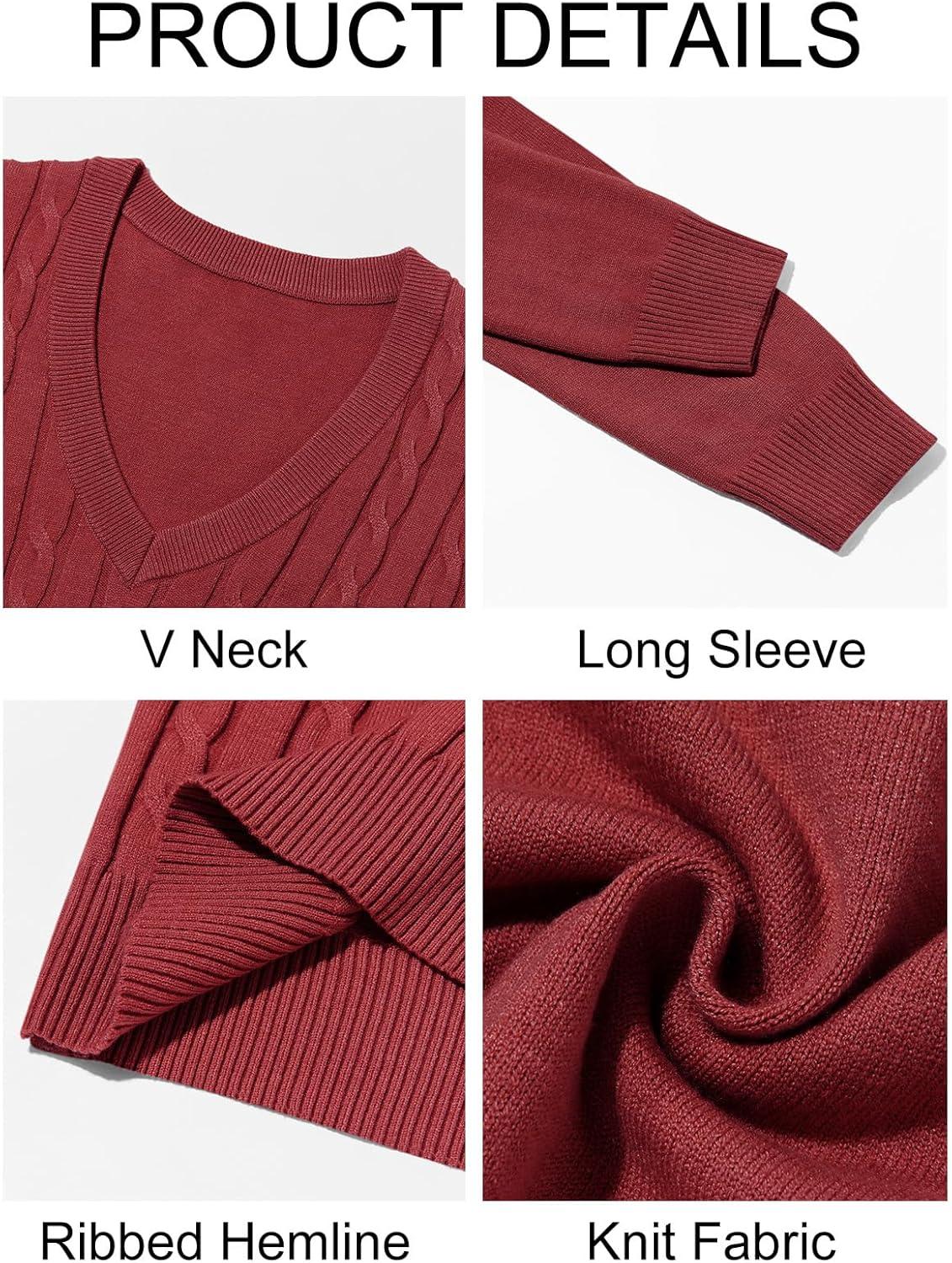 Runcati Mens V Neck Sweater Cable Knit Long Sleeve Casual Ribbed Twisted Pullover Sweaters(Burgundy)