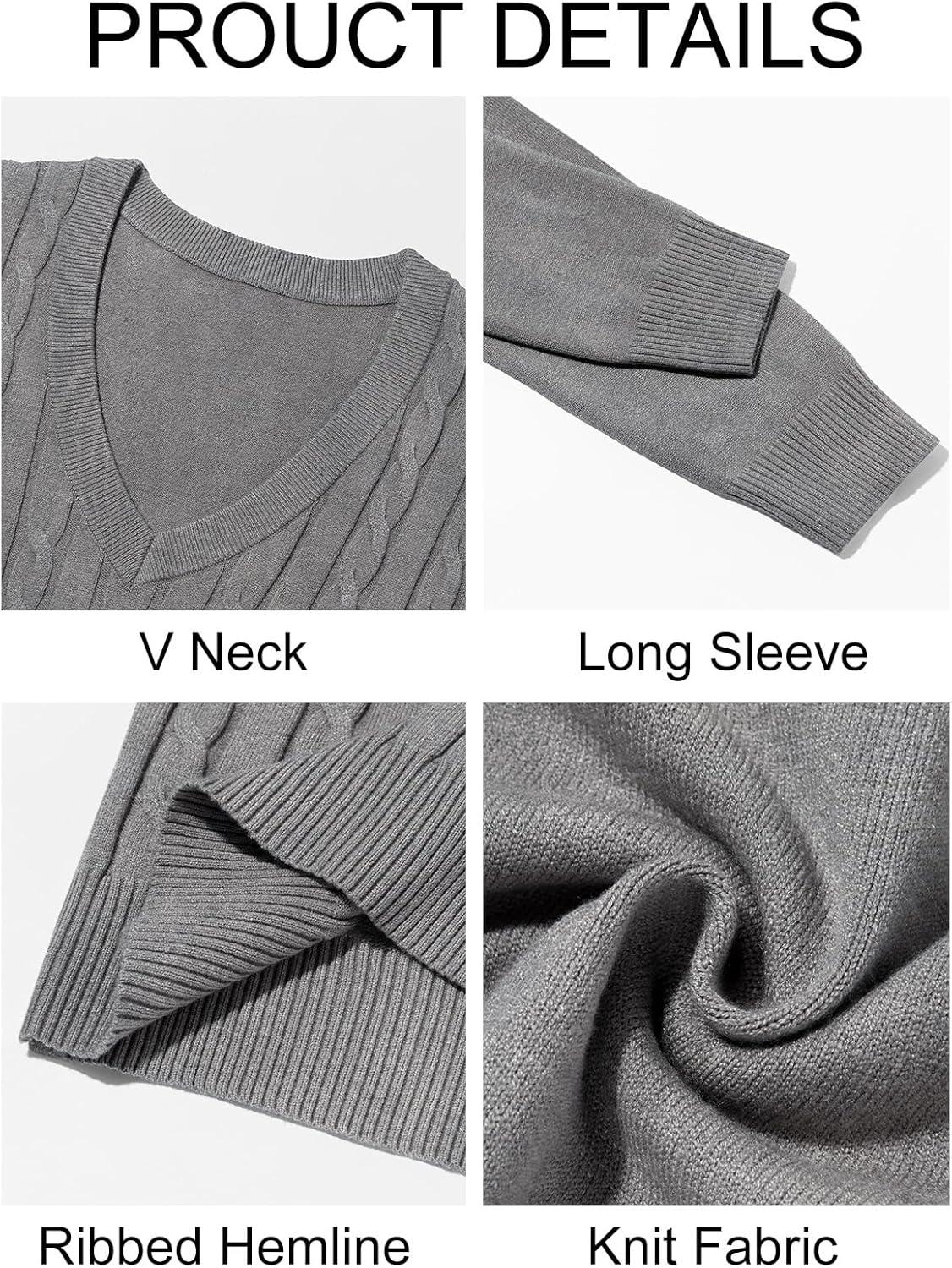 Runcati Mens V Neck Sweater Cable Knit Long Sleeve Casual Ribbed Twisted Pullover Sweaters(Grey)