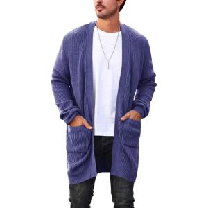 Runcati Mens Cardigan Sweater Casual Cable Knit V Neck Open Front Ribbed Long Winter Sweaters(Navy)