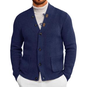 Runcati Mens Shawl Collar Cardigan Sweaters Button Down Open Front Knitwear Cable Knitted Ribbed Jackets Outwear(Navy)