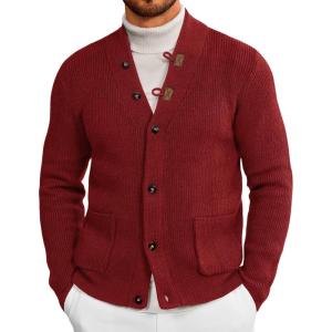 Runcati Mens Cable Knit Cardigan Sweater Shawl Collar Casual Button Down Long Sleeve Sweaters(Red)