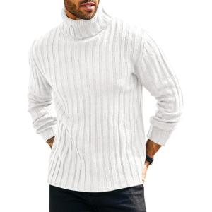 Mens Sweaters Turtleneck Cable Knitted Pullover Long Sleeve Slim Fit Chunky Casual Fall Winter Warm Cardigans(White)