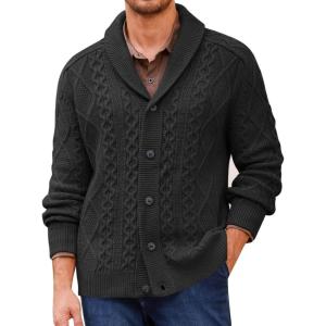 Runcati Mens Cable Knit Cardigan Sweater Shawl Collar Casual Button Down Long Sleeve Sweaters(Black)