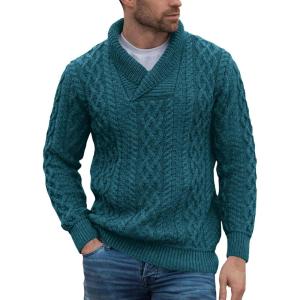 Runcati Mens Shawl Collar Sweaters Casual Cable Knit V-Neck Slim Fit Fall Winter Lightweight Pullover Sweater Knitwear(Green)