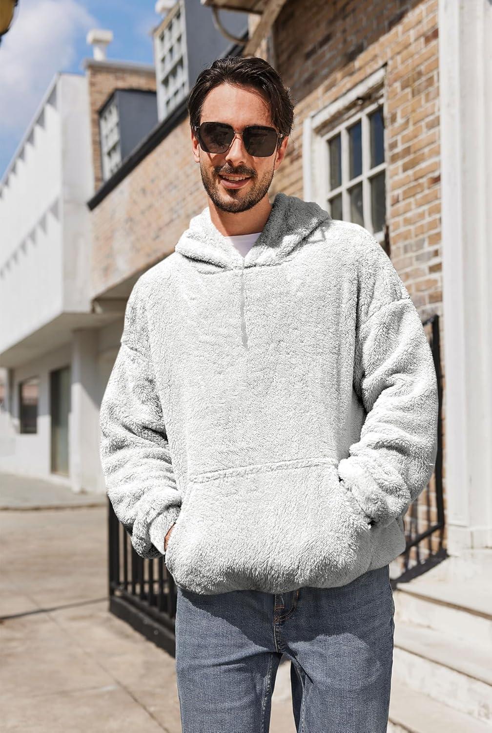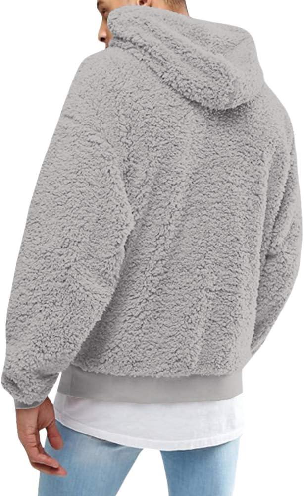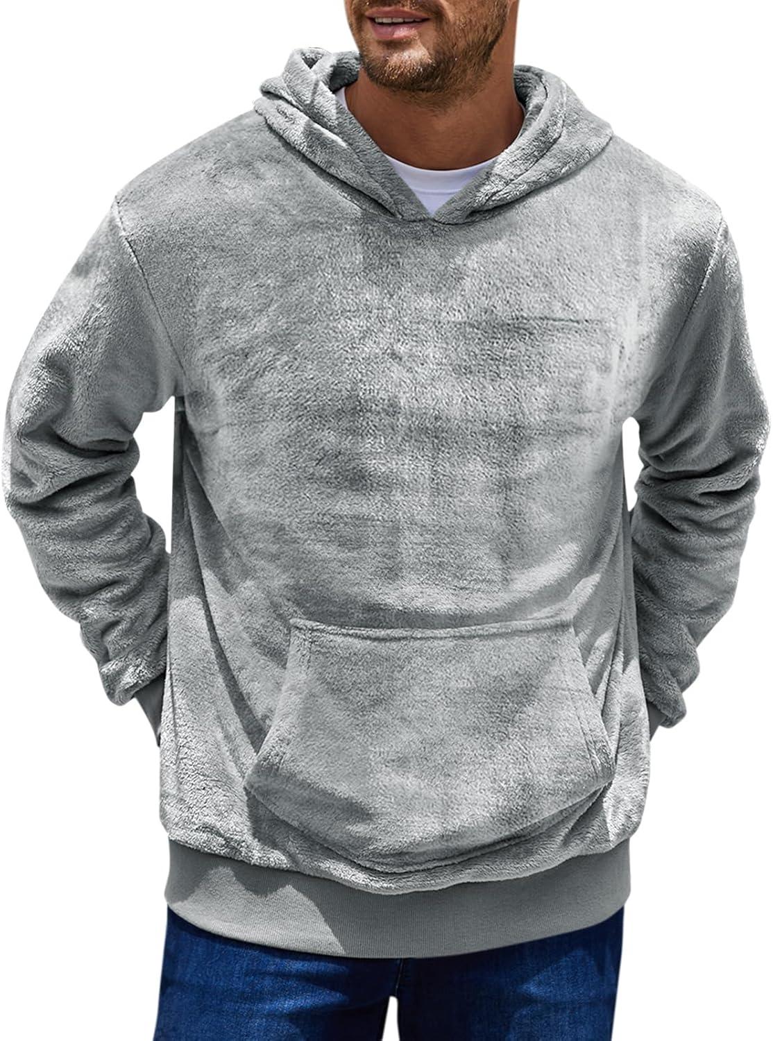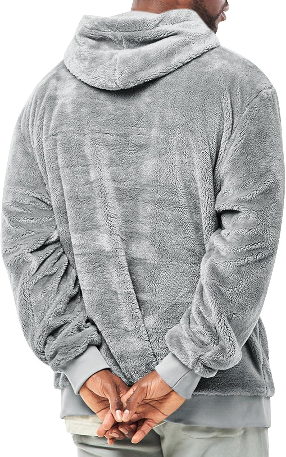Runcati Mens Fuzzy Sherpa Pullover Hoodie Sweatshirts Long Sleeve Kangaroo Pocket Winter Fall Outwear Hooded(Gray)