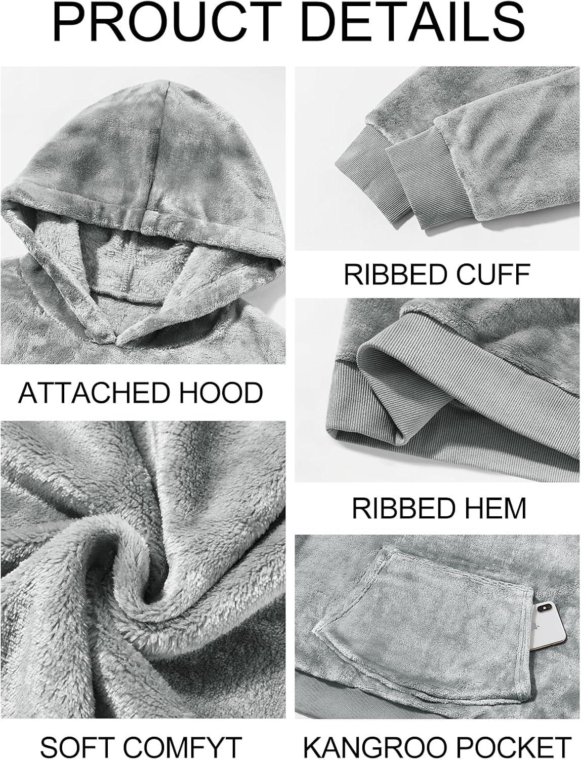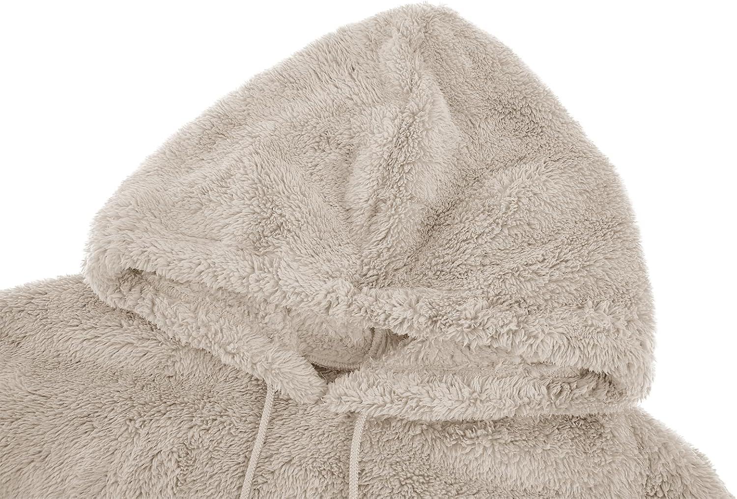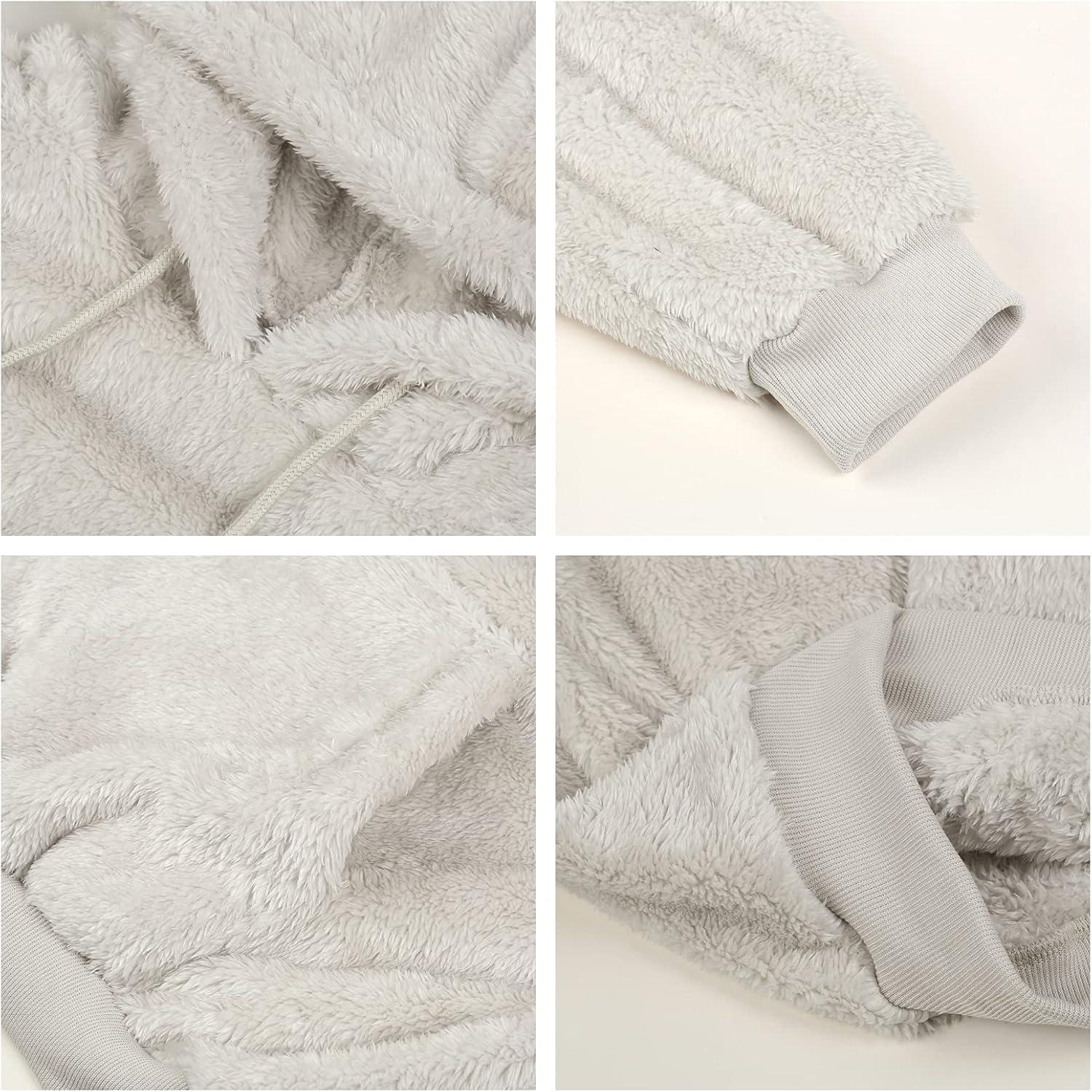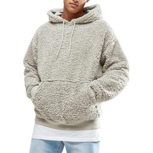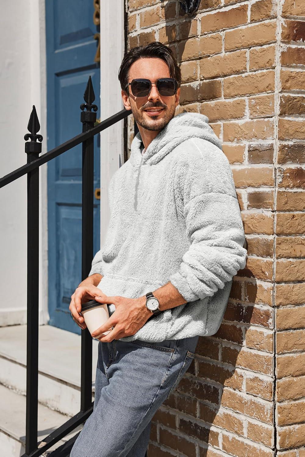 Runcati Mens Fuzzy Sherpa Pullover Hoodie Sweatshirts Long Sleeve Kangaroo Pocket Winter Fall Outwear Hooded(Gray)