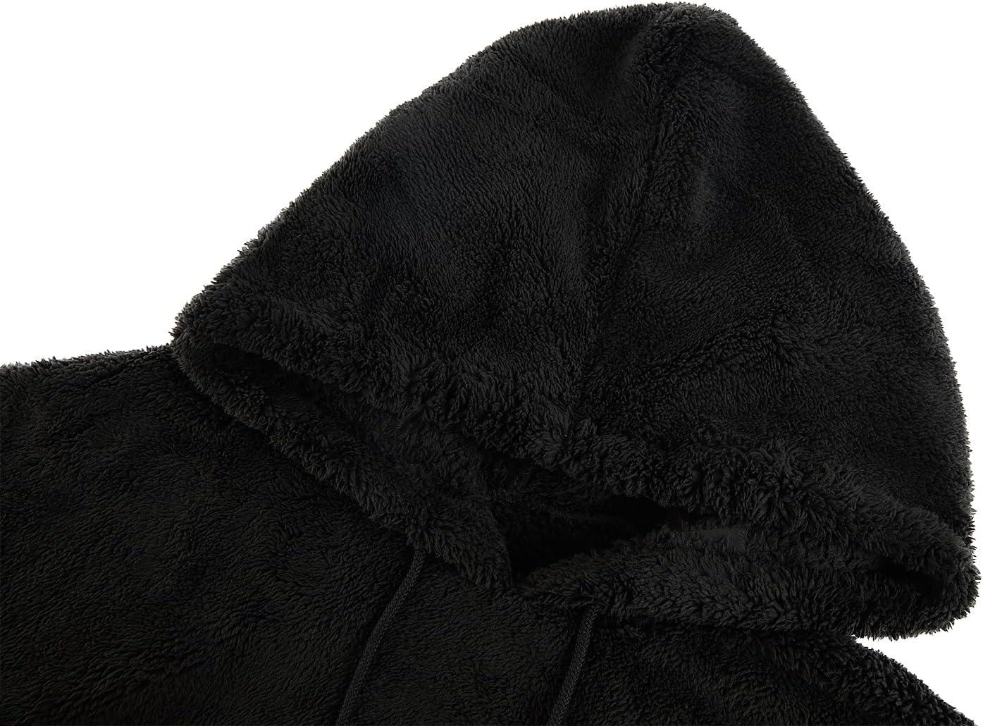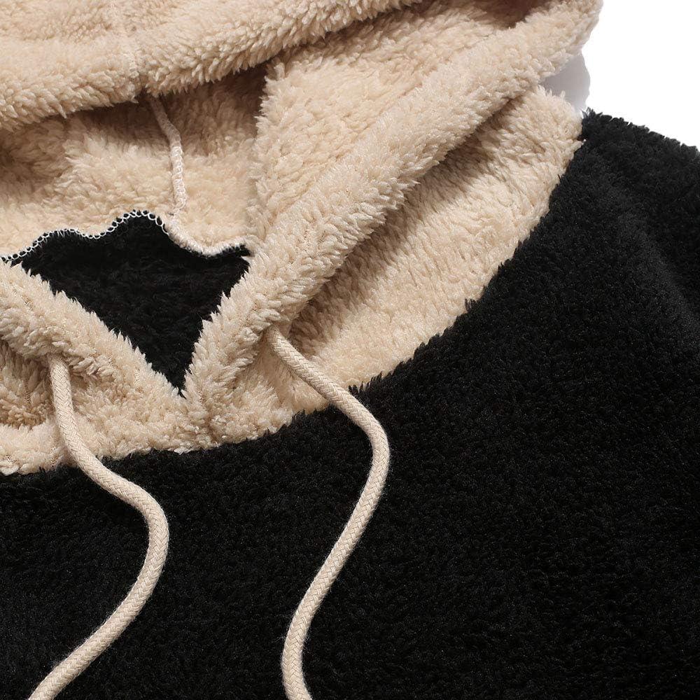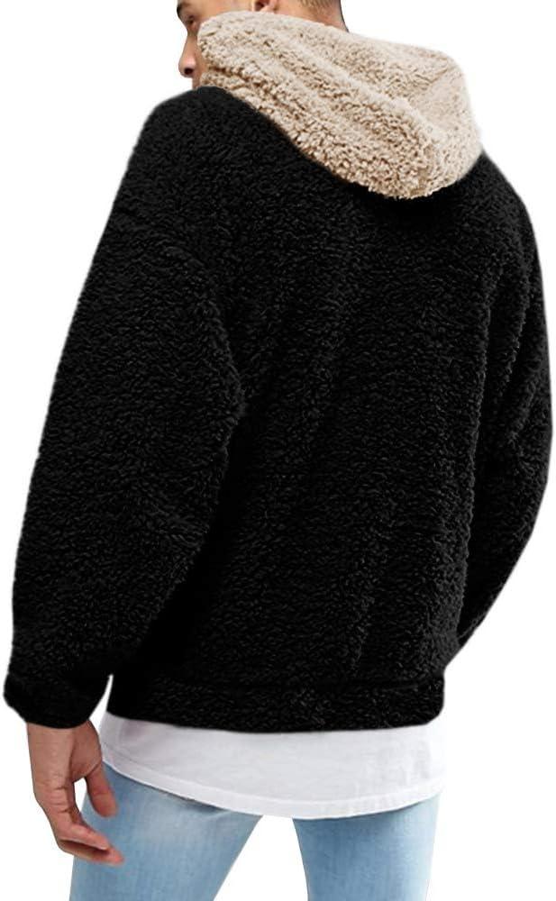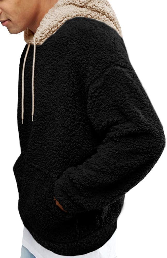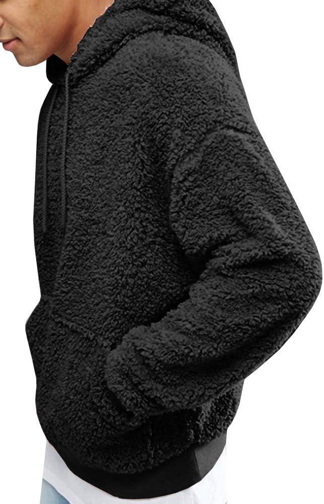 Runcati Mens Fuzzy Sherpa Pullover Hoodie Sweatshirts Long Sleeve Kangaroo Pocket Winter Fall Outwear Hooded(Black)