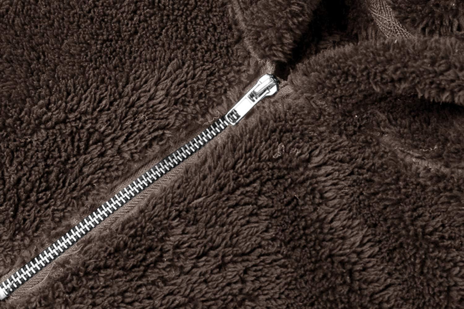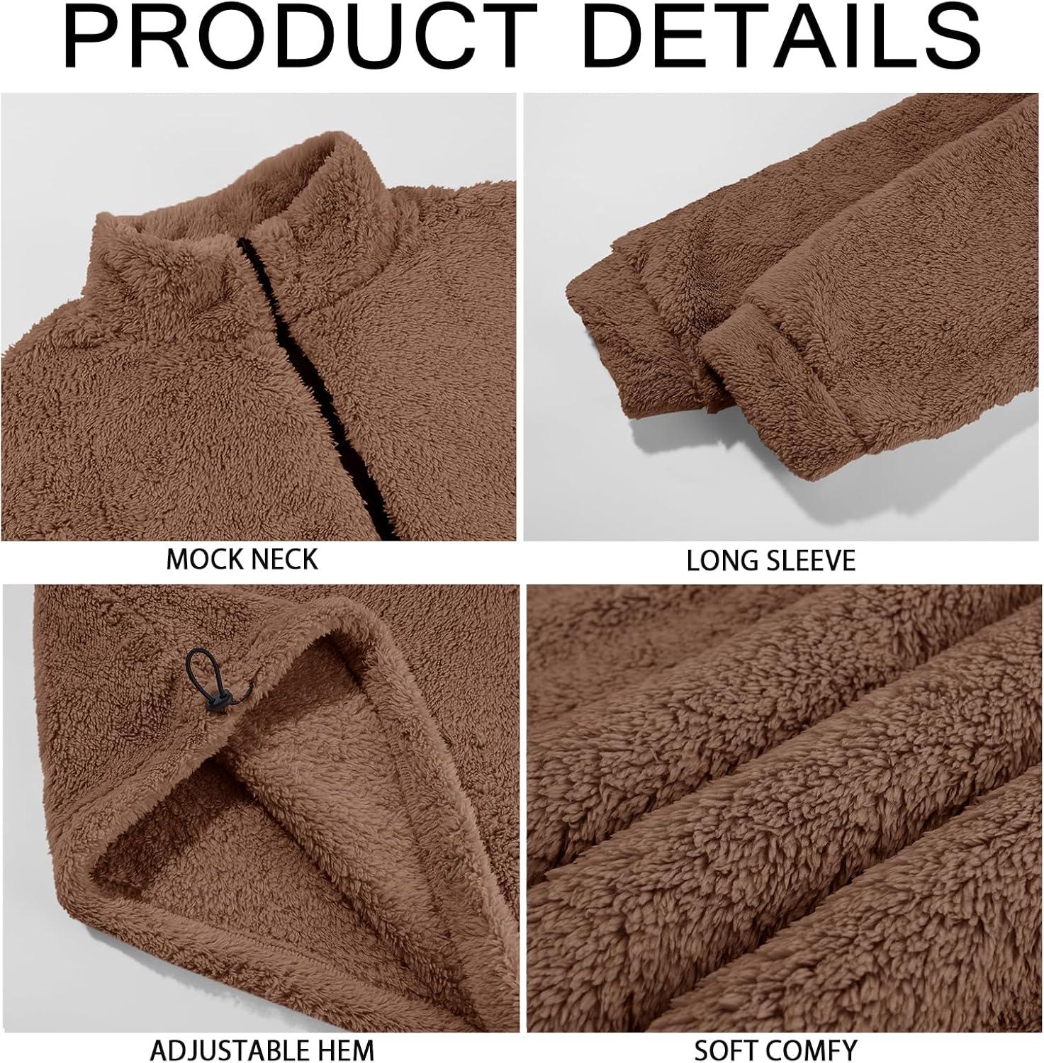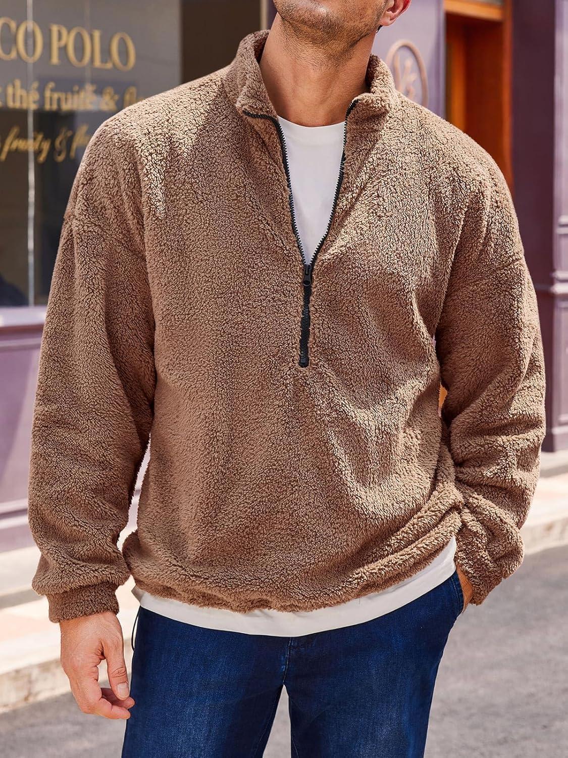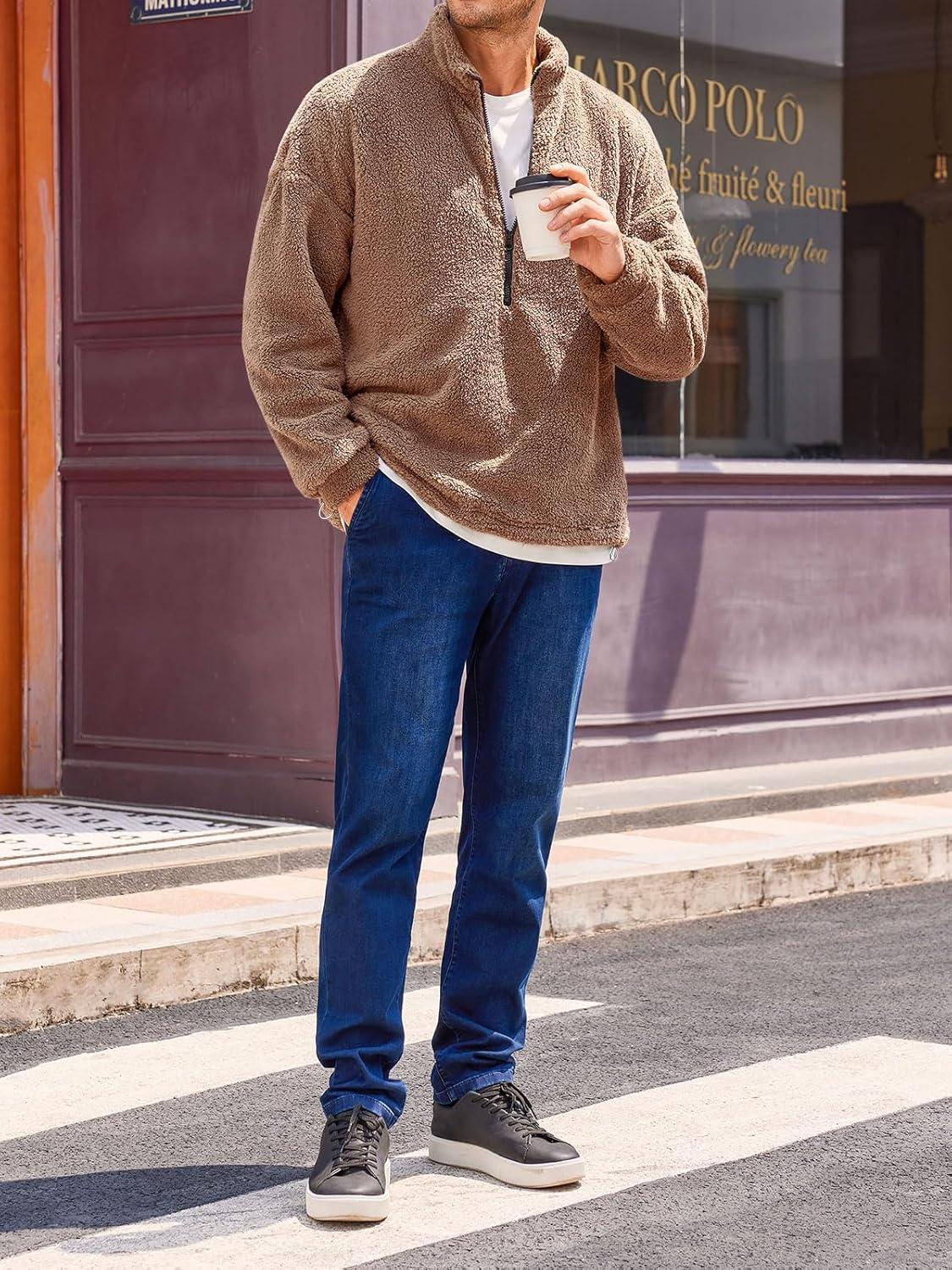 Runcati Mens Fuzzy Sherpa Sweatshirt Quarter Zip Pullover Long Sleeve Winter Fall Fleece Outwear(Brown)