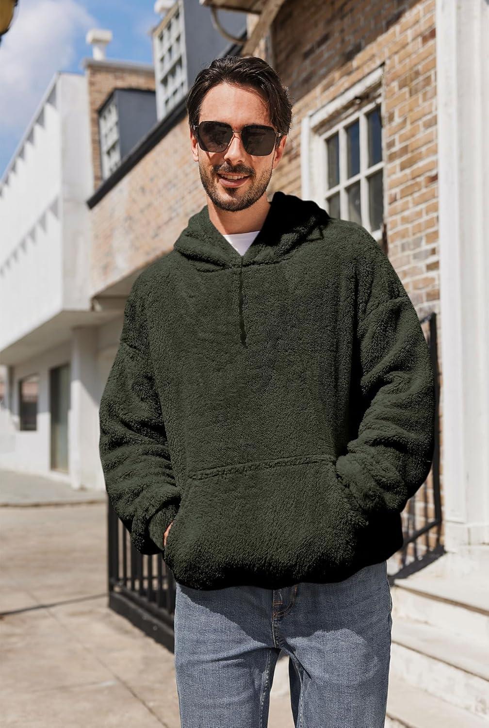 Runcati Mens Fuzzy Sherpa Pullover Hoodie Sweatshirts Long Sleeve Sport Front Pocket Military Fall Outwear Winter Hooded(03 Army Green)
