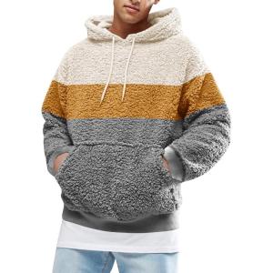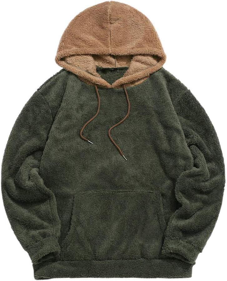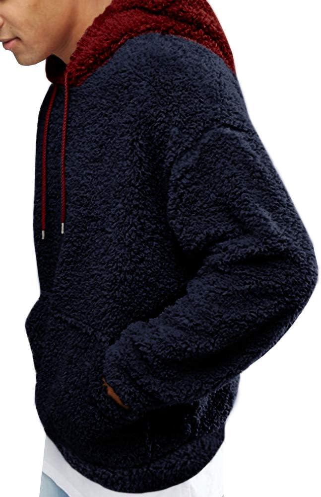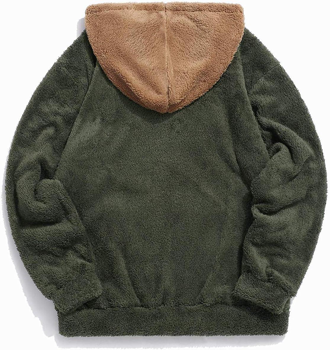 Runcati Mens Fuzzy Sherpa Pullover Hoodie Sweatshirts Long Sleeve Sport Front Pocket Military Fall Outwear Winter Hooded(01 Picture Color)