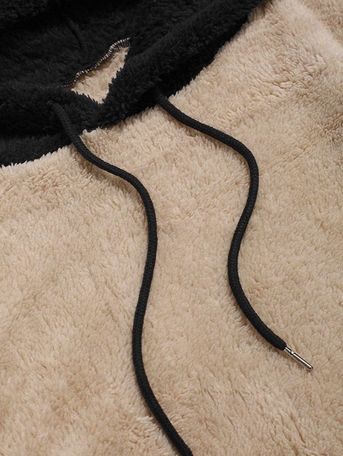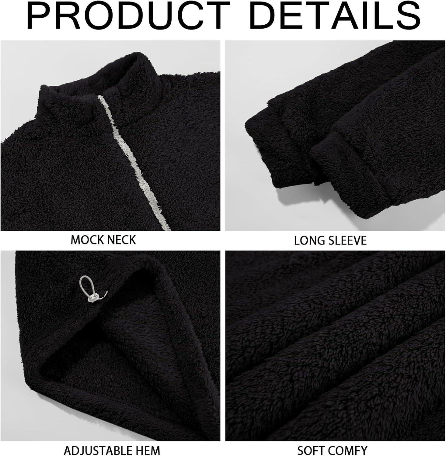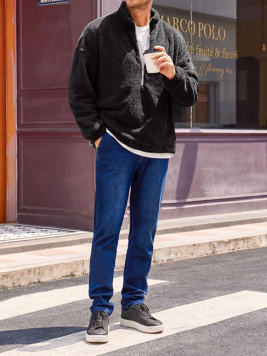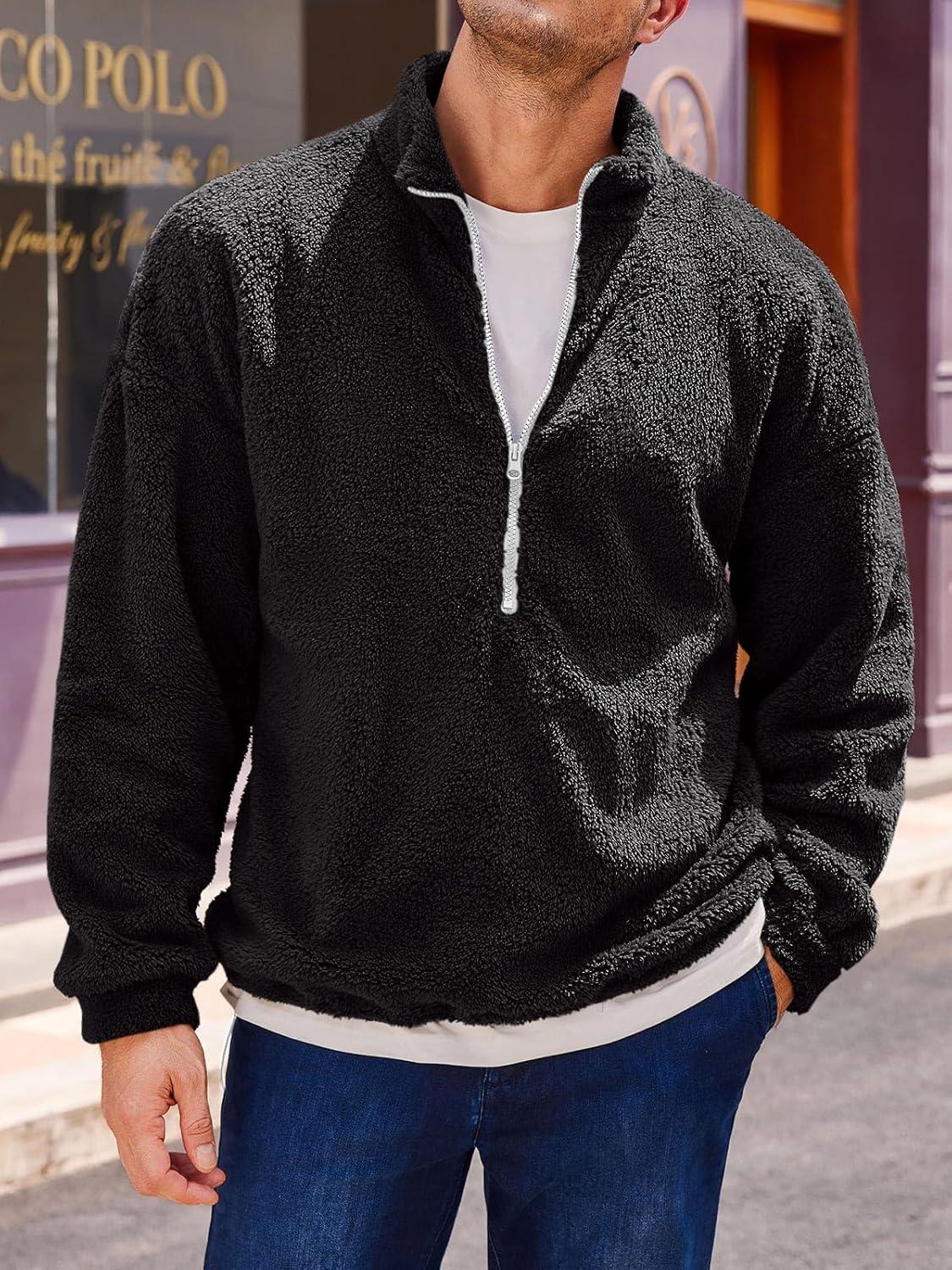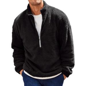 Runcati Mens Fuzzy Sherpa Sweatshirt Quarter Zip Pullover Long Sleeve Winter Fall Fleece Outwear(Black)