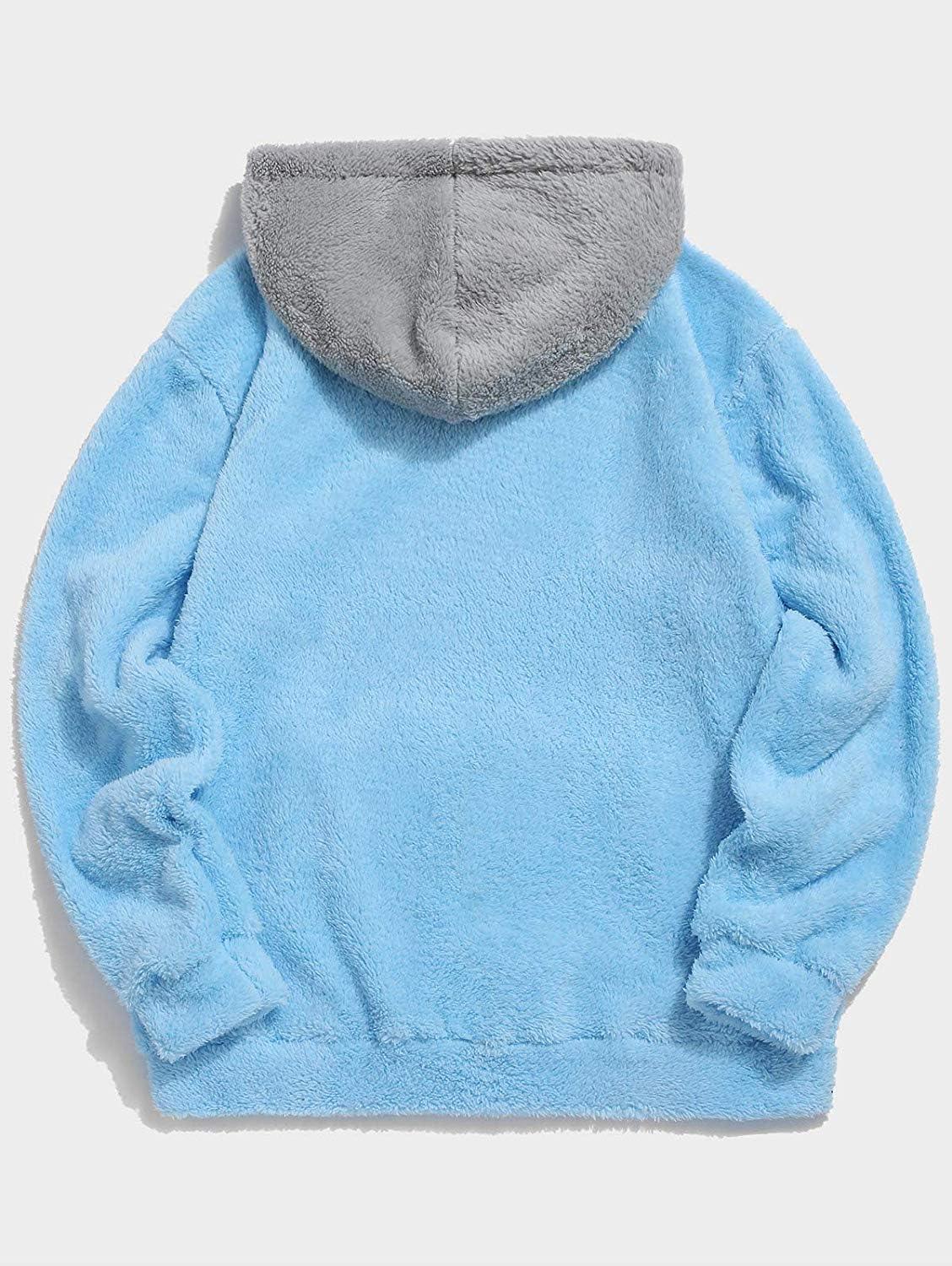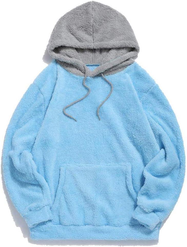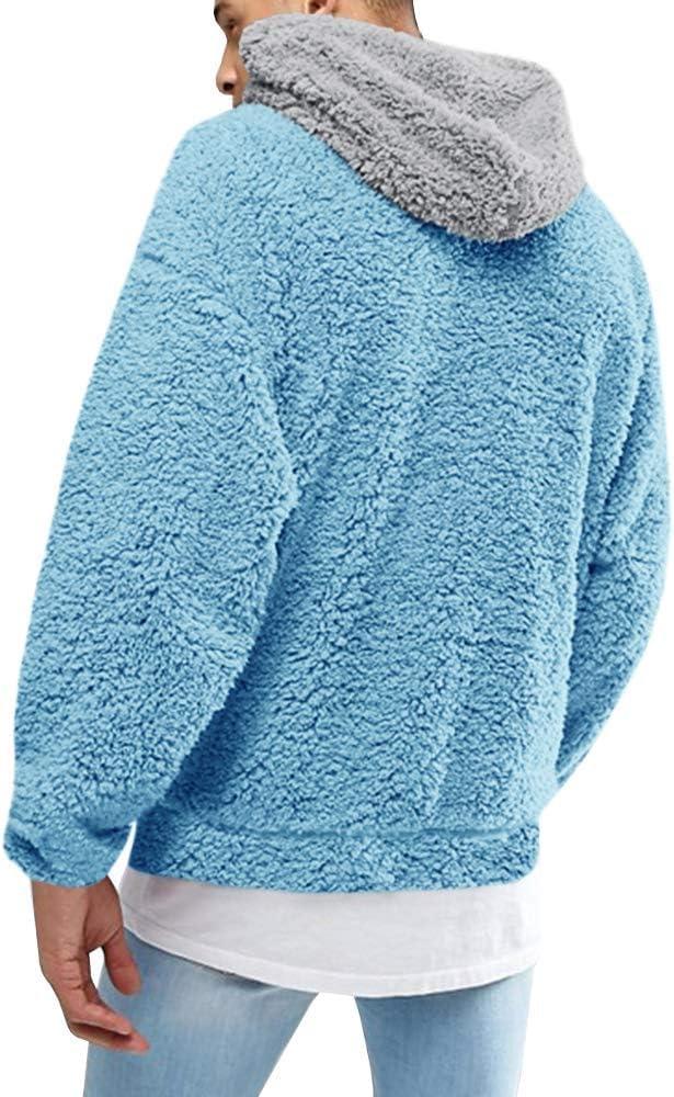 Runcati Mens Fuzzy Sherpa Pullover Hoodie Sweatshirts Long Sleeve Sport Front Pocket Military Fall Outwear Winter Hooded(06 Blue)