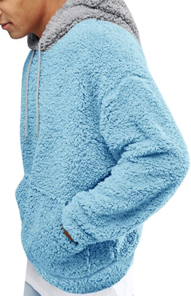 Runcati Mens Fuzzy Sherpa Pullover Hoodie Sweatshirts Long Sleeve Sport Front Pocket Military Fall Outwear Winter Hooded(03 Blue)