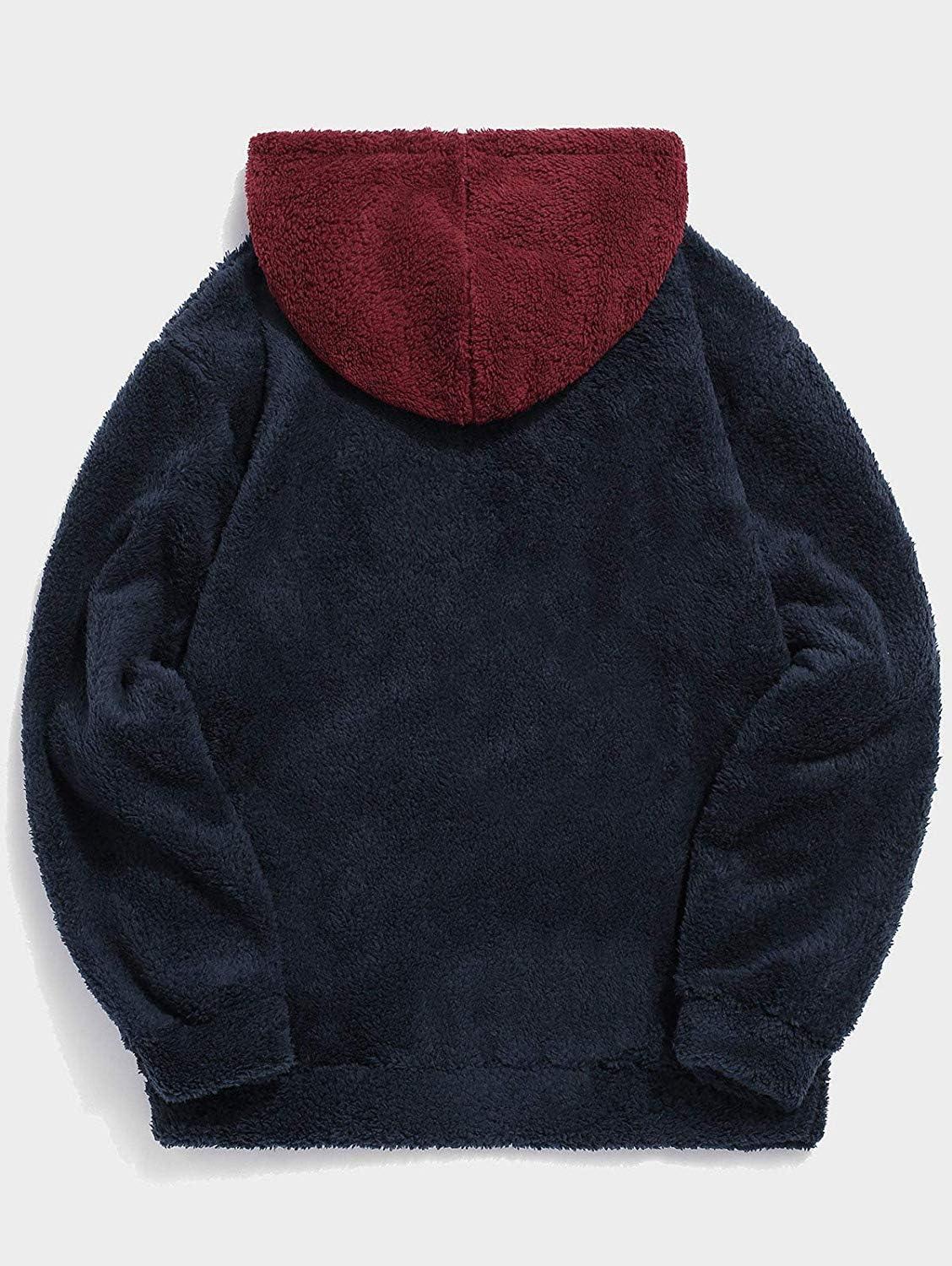 Runcati Mens Fuzzy Sherpa Pullover Hoodie Sweatshirts Long Sleeve Sport Front Pocket Military Fall Outwear Winter Hooded(03 Navy)