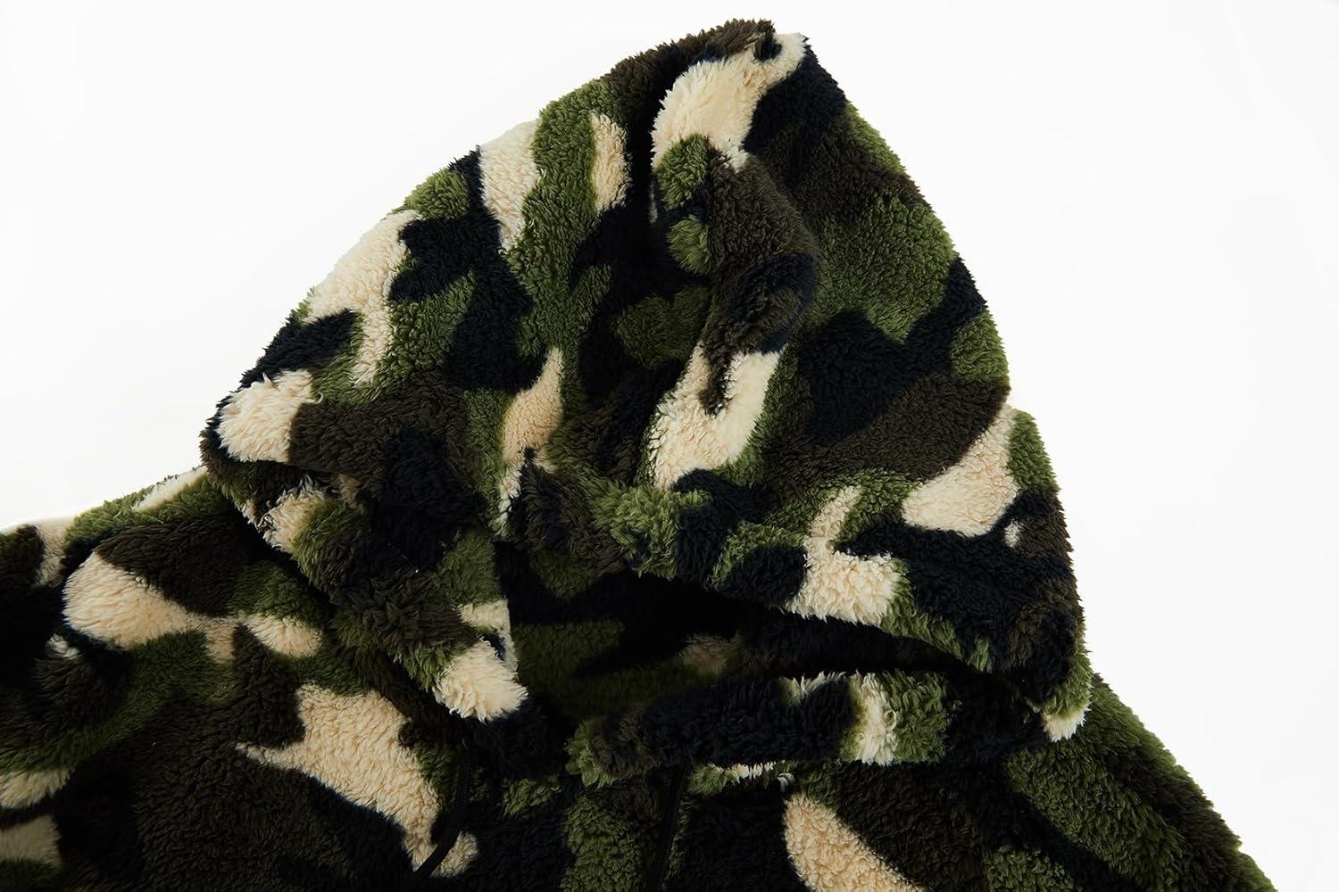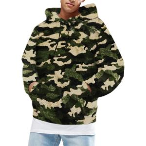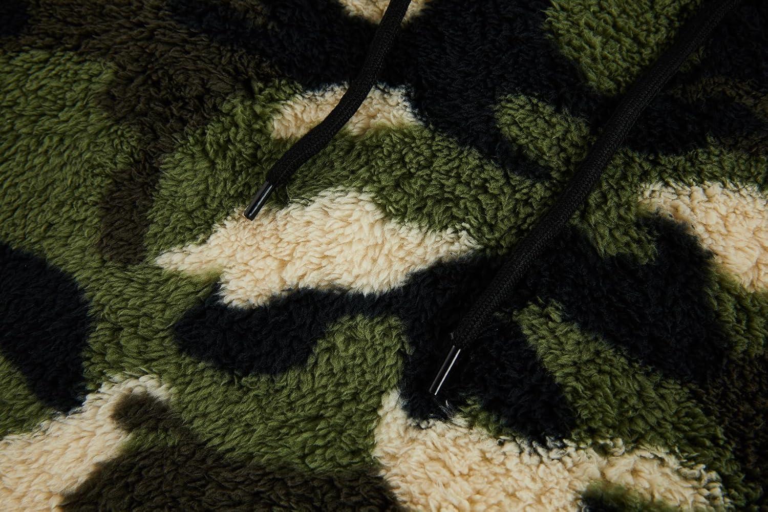 Runcati Mens Fuzzy Sherpa Pullover Hoodie Sweatshirts Long Sleeve Sport Front Pocket Military Fall Outwear Winter Hooded(05 Army Green)