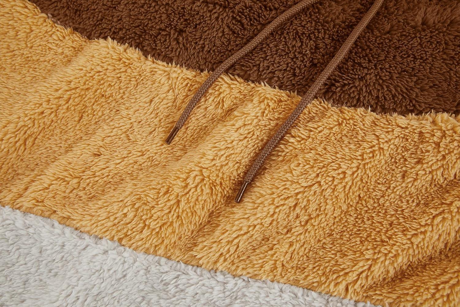 Runcati Mens Fuzzy Sherpa Pullover Hoodie Sweatshirts Long Sleeve Sport Front Pocket Military Fall Outwear Winter Hooded(06 Brown)