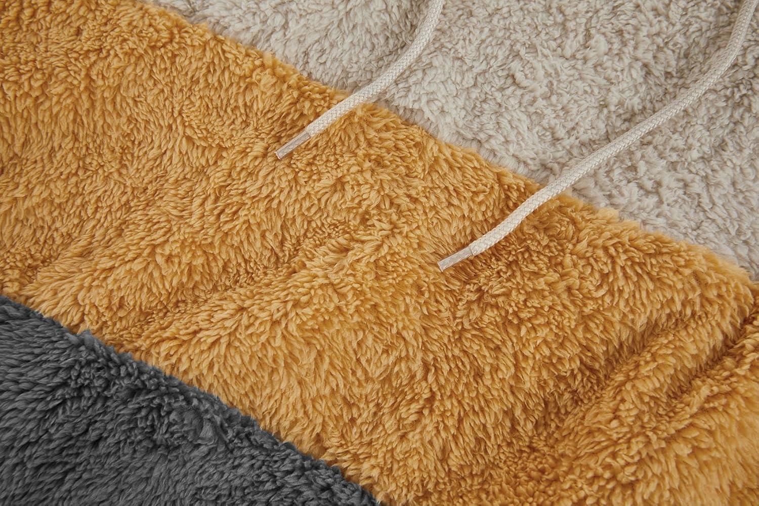 Runcati Mens Fuzzy Sherpa Pullover Hoodie Sweatshirts Long Sleeve Sport Front Pocket Military Fall Outwear Winter Hooded(03 Beige)