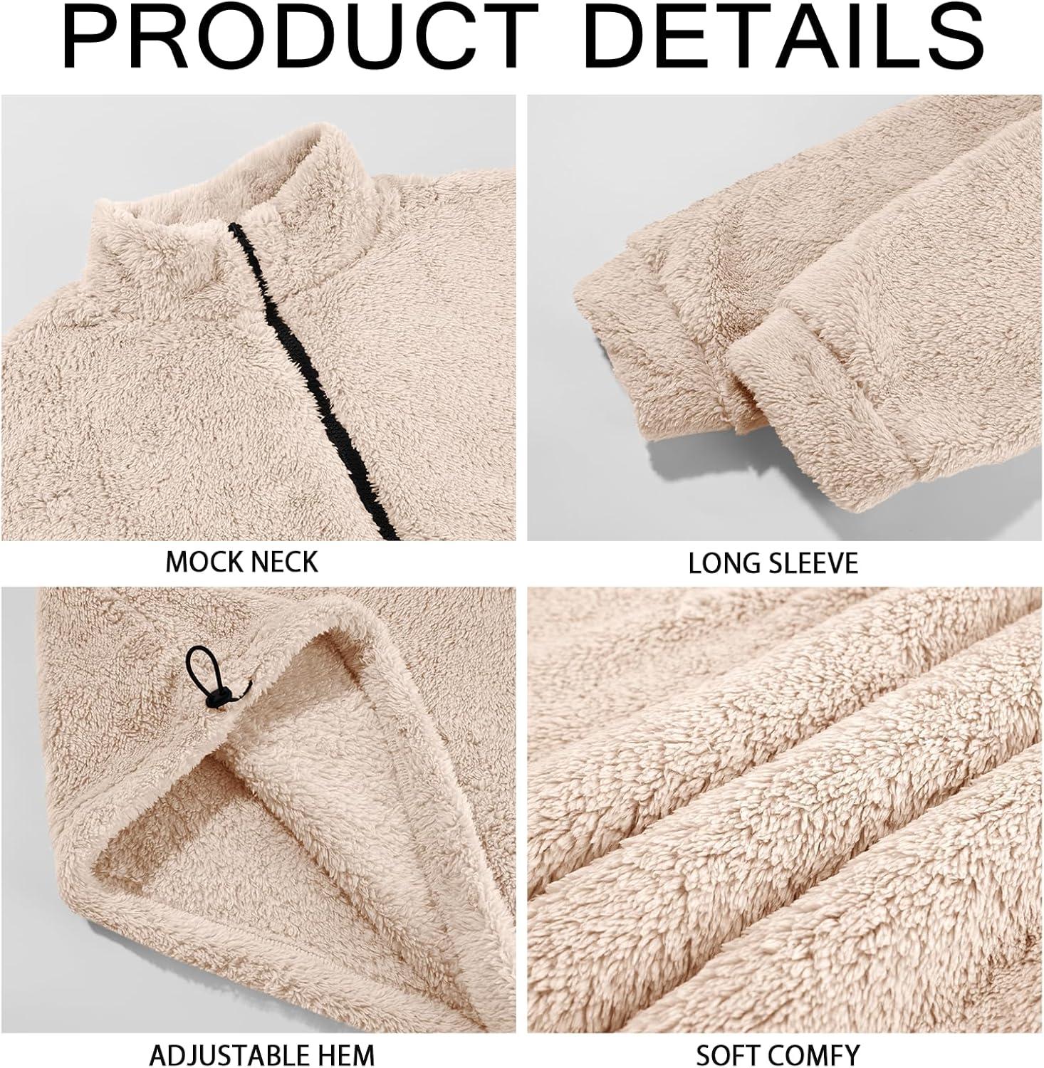 Runcati Mens Fuzzy Sherpa Sweatshirt Quarter Zip Pullover Long Sleeve Winter Fall Fleece Outwear(Apricot)