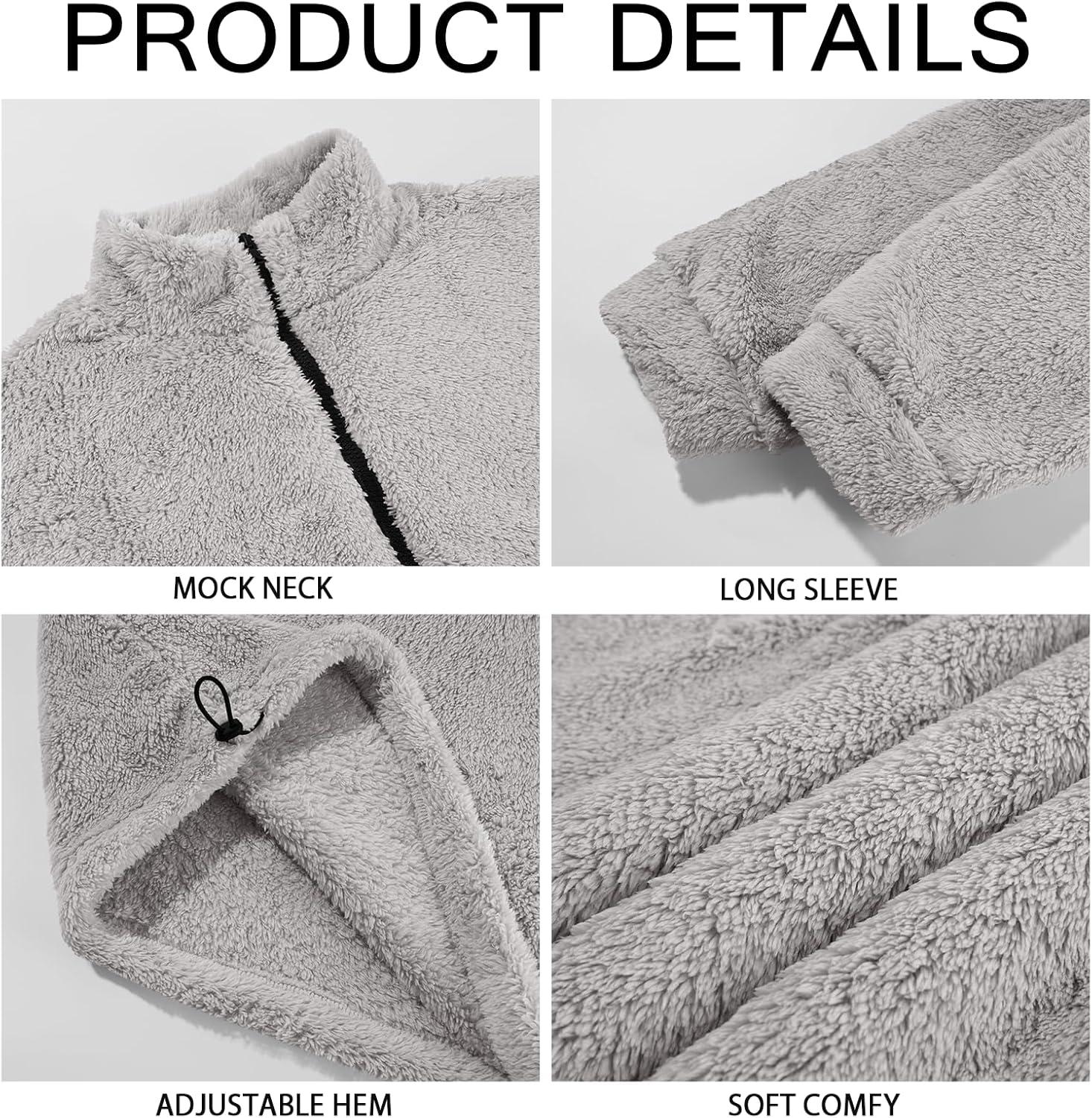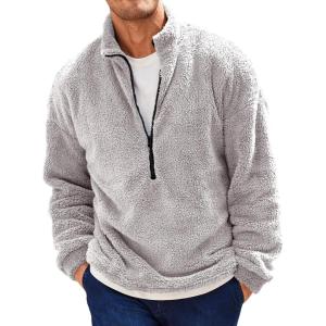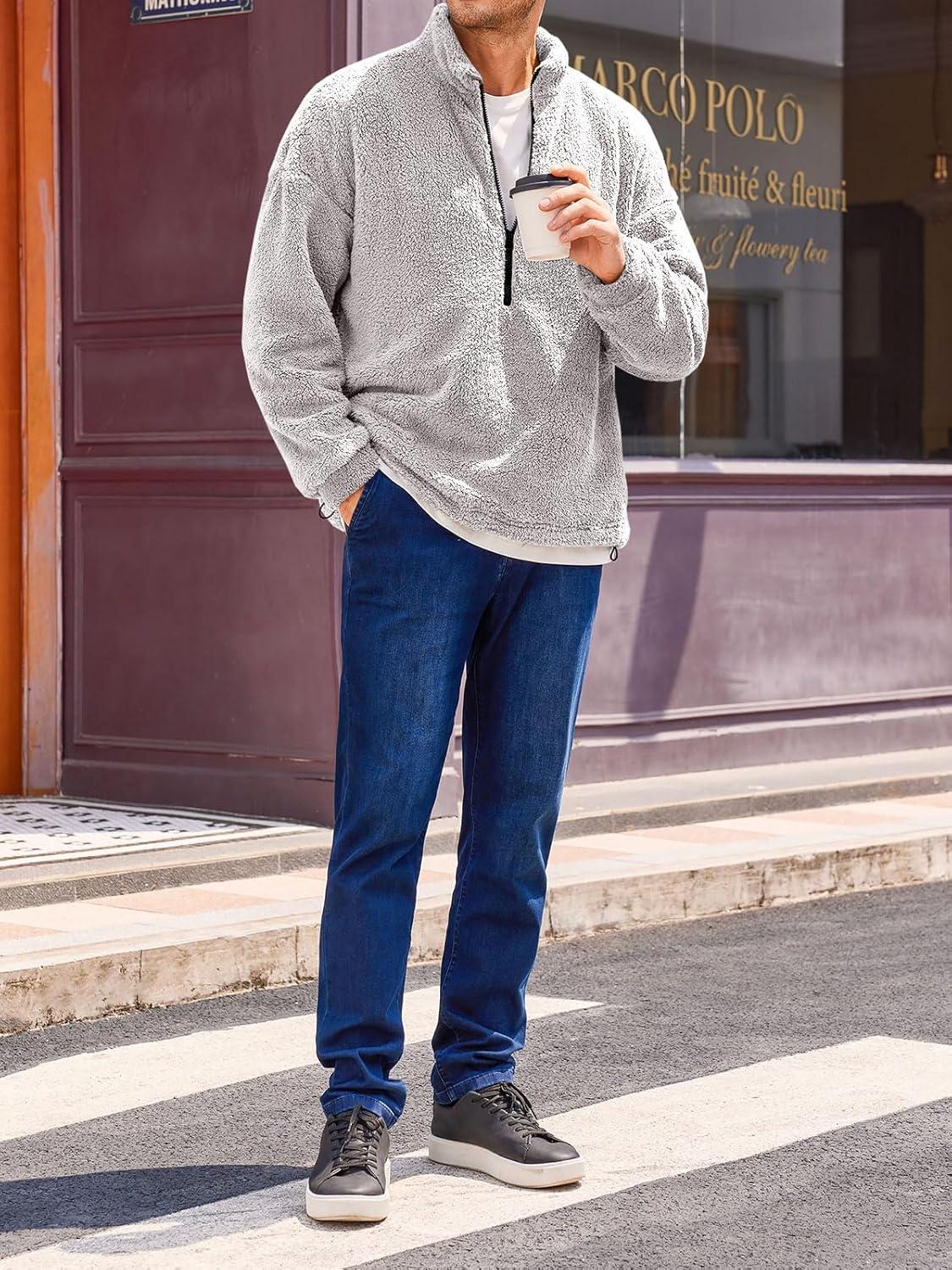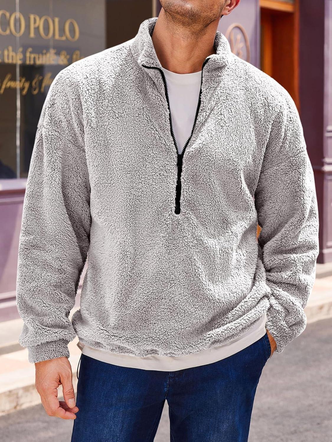 Runcati Mens Fuzzy Sherpa Sweatshirt Quarter Zip Pullover Long Sleeve Winter Fall Fleece Outwear(Gray)