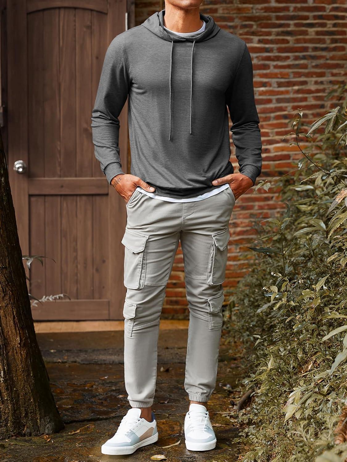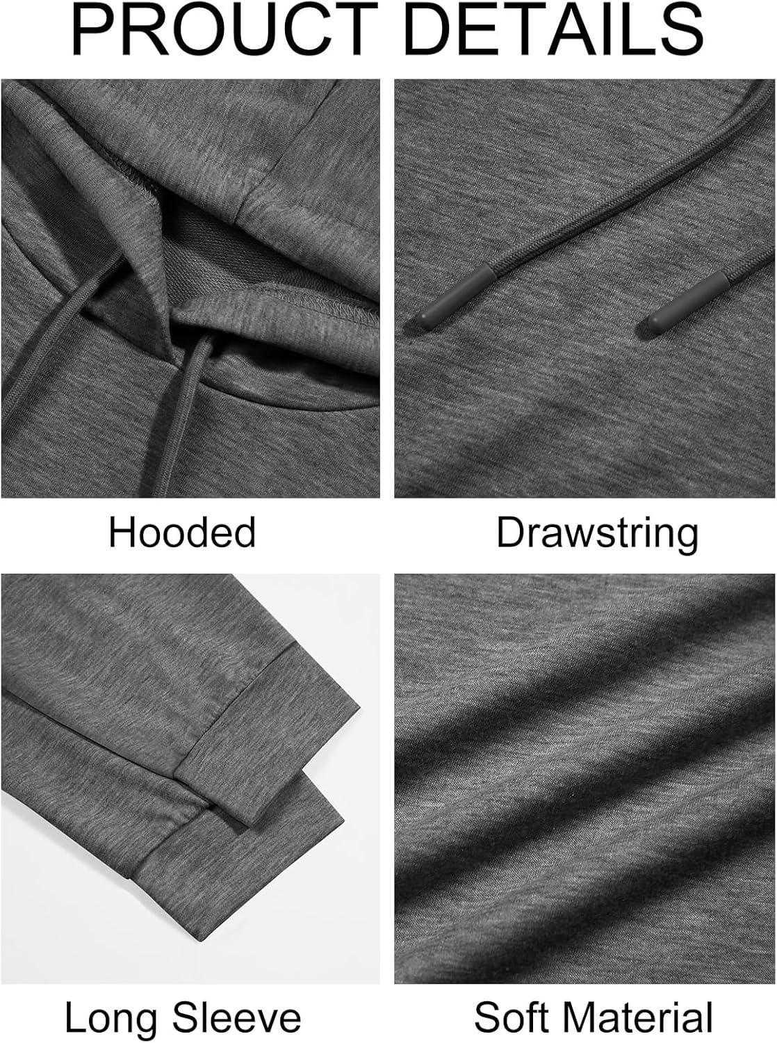 Runcati Mens Lightweight Hoodies Pullover Long Sleeve Casual Workout Athletic Shirt Hooded Sweatshirts(Grey)
