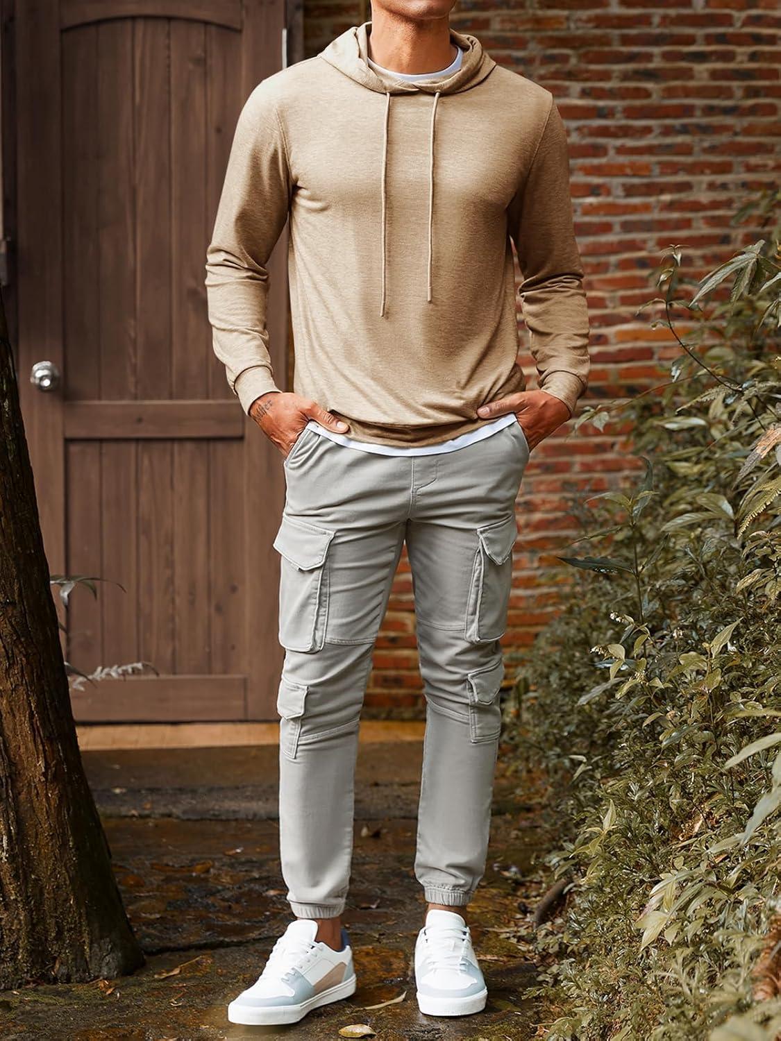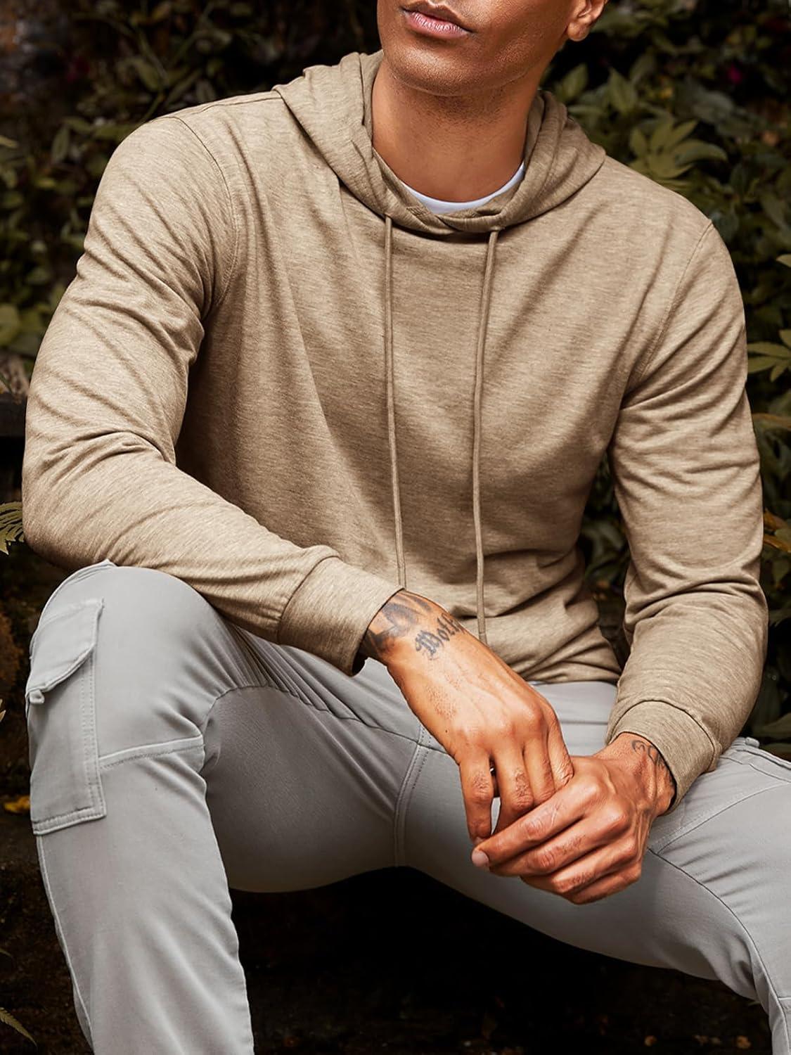 Runcati Mens Lightweight Hoodies Pullover Long Sleeve Casual Workout Athletic Shirt Hooded Sweatshirts(Khaki)