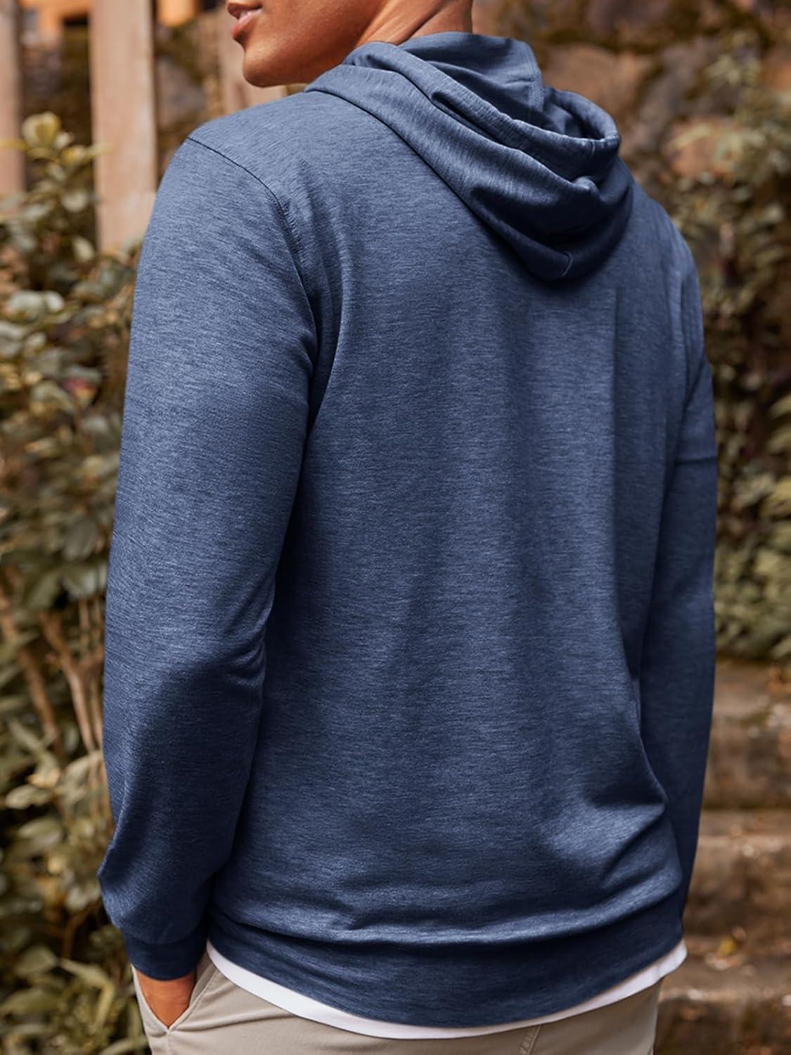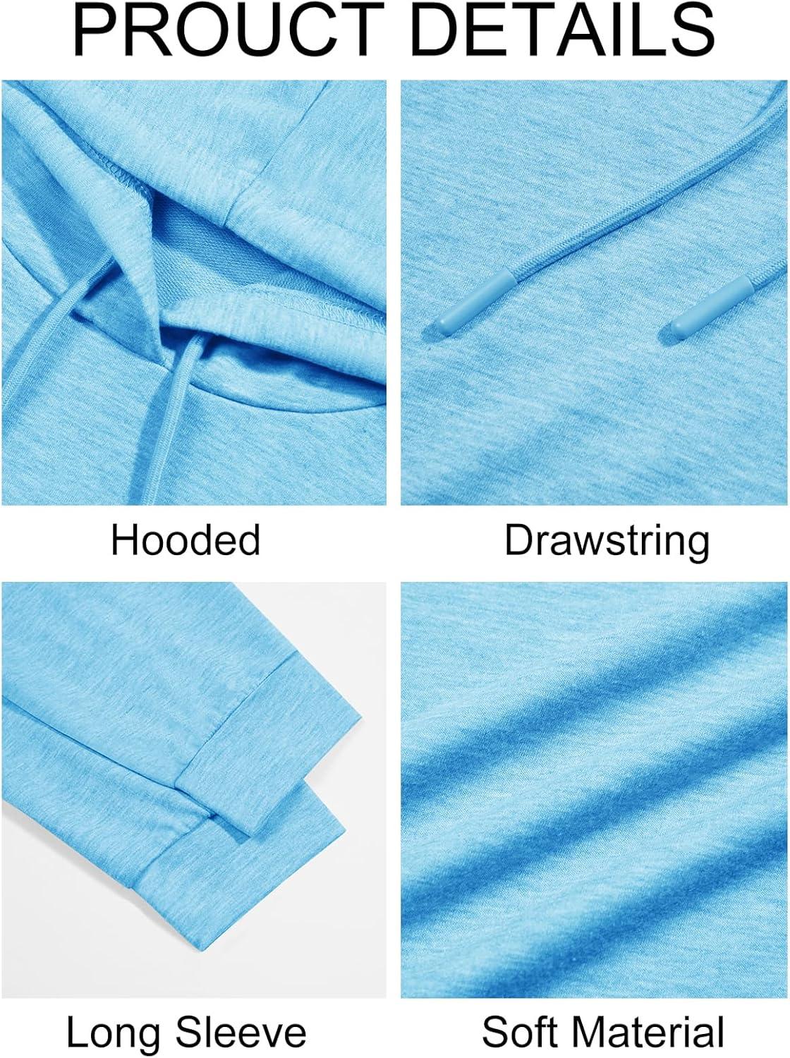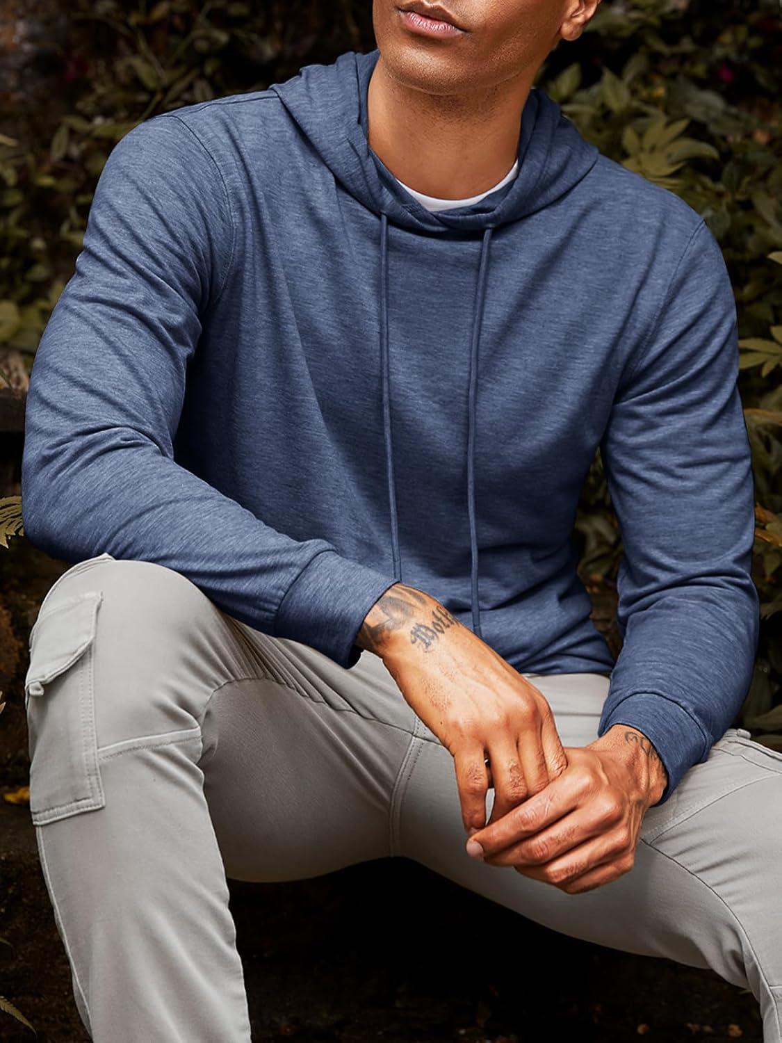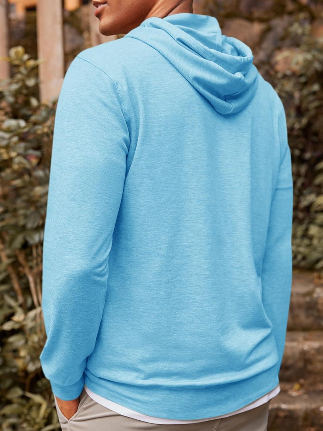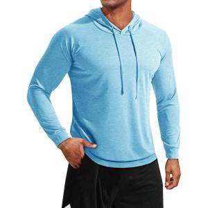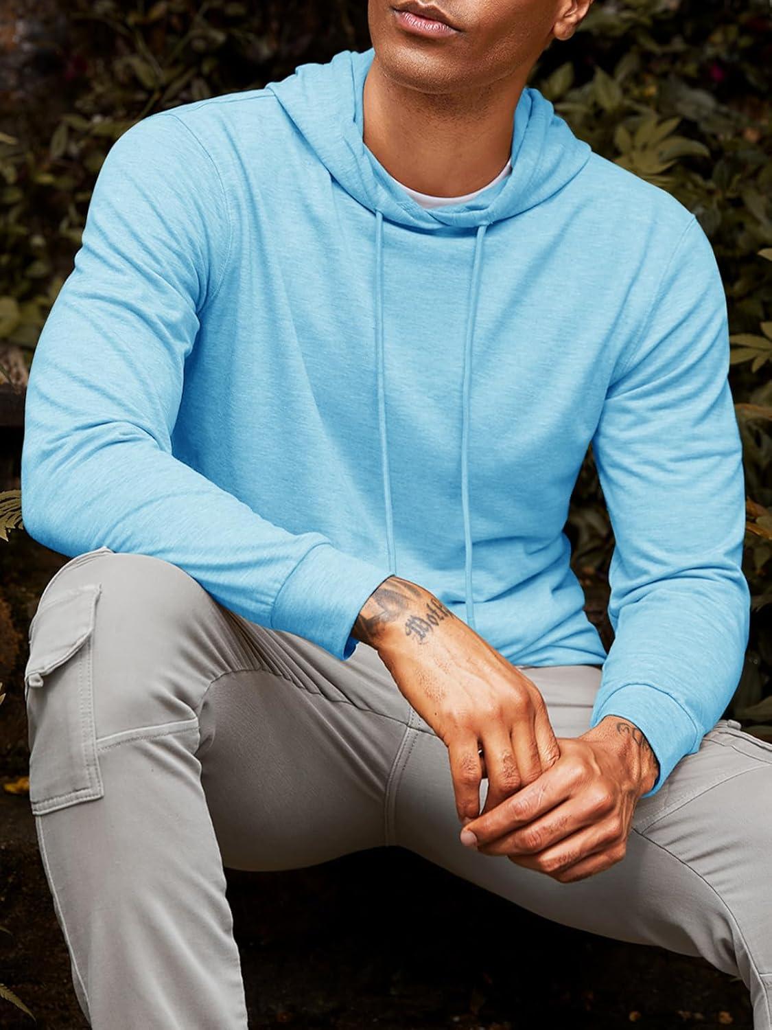 Runcati Mens Lightweight Hoodies Pullover Long Sleeve Casual Workout Athletic Shirt Hooded Sweatshirts(Light Blue)